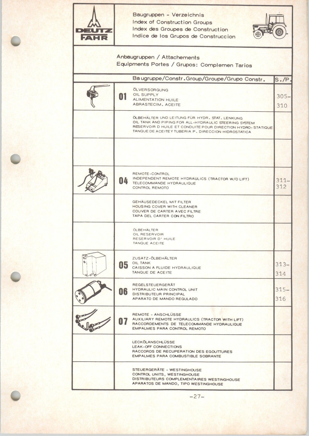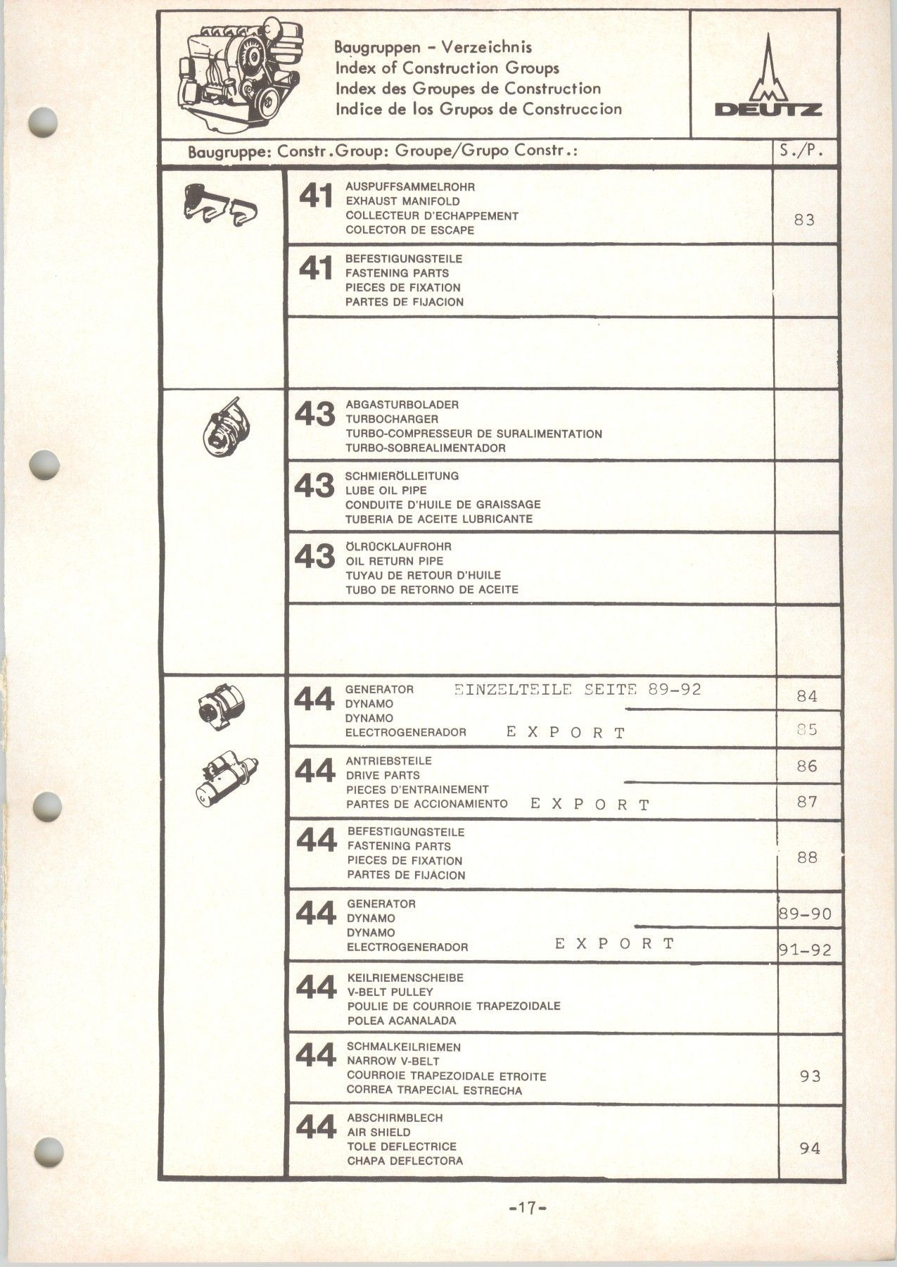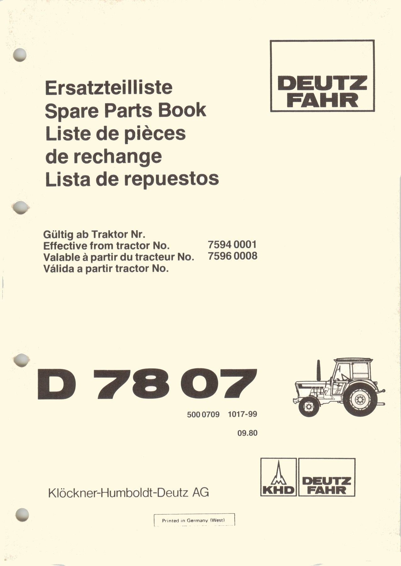Ersatzteilliste für den Deutz Fahr Traktor D 7807 Deutsch