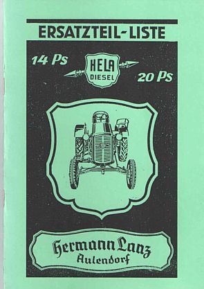 Ersatzteilliste Hela ( Hermann Lanz ) Aulendorf,14 PS, 18 PS , 20 PS, Ackerschlepper