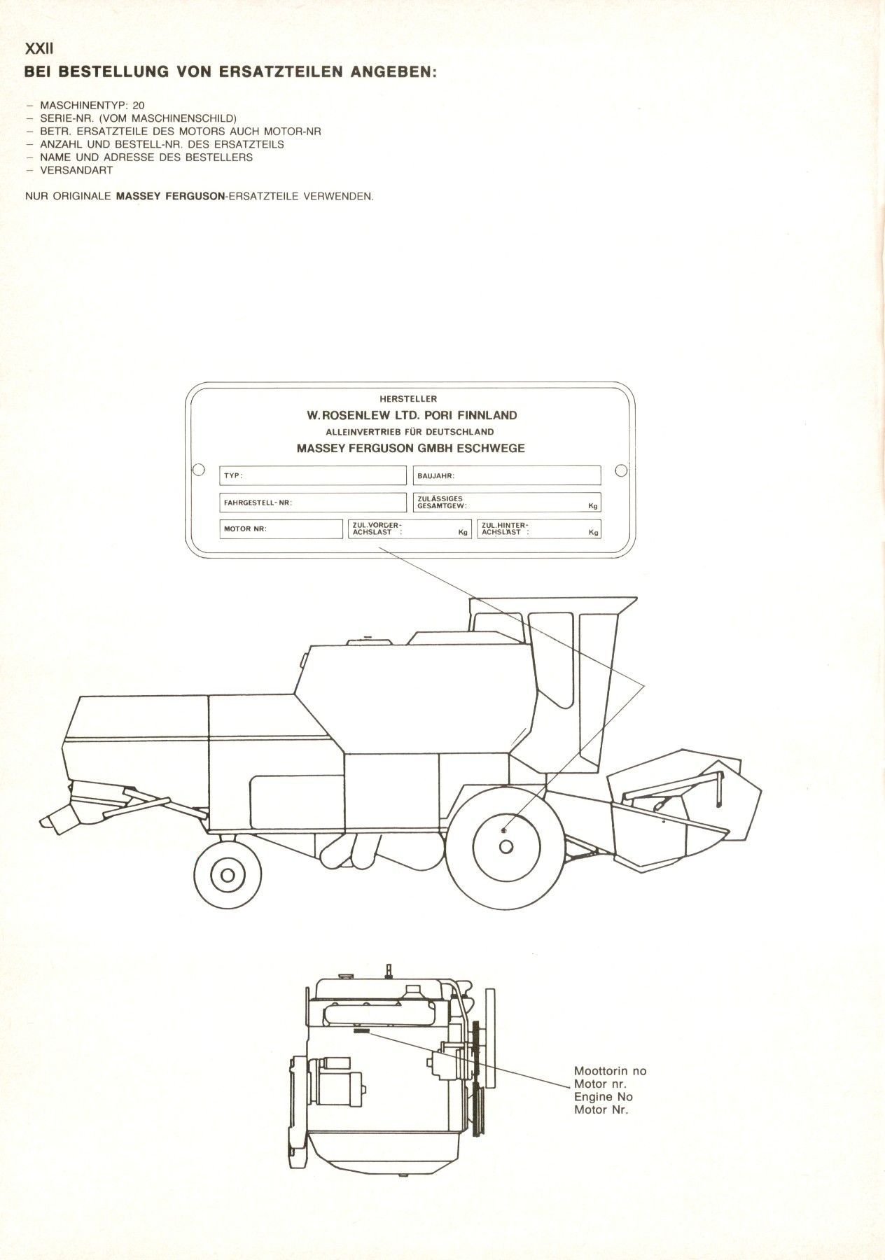 Ersatzteilliste Massey Ferguson MF 20 Mähdrescher