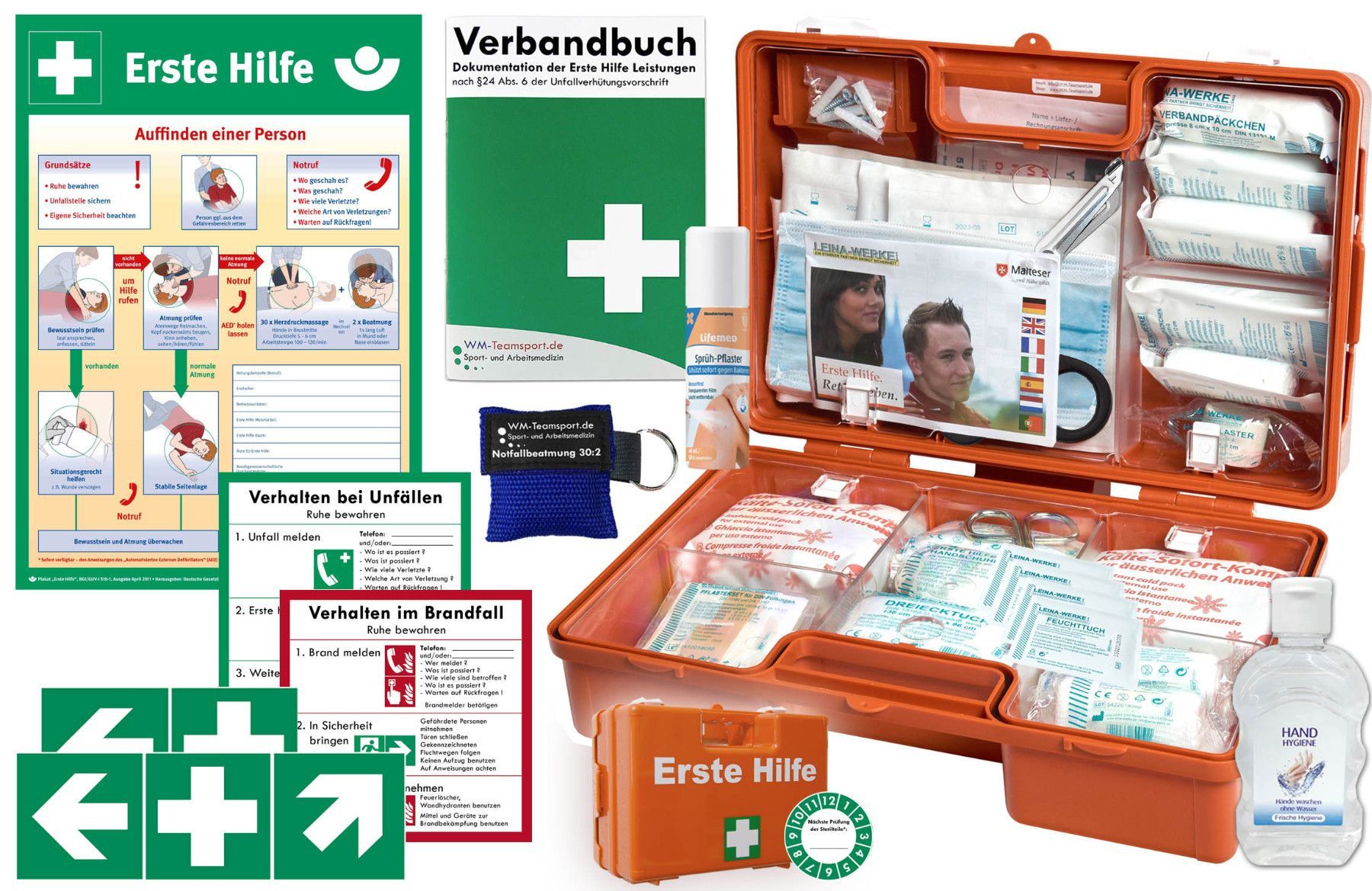 Erste-Hilfe Koffer M5 PLUS DIN 13157 + Sprühpflaster, Hygiene-Gel, Notfallbeatmung