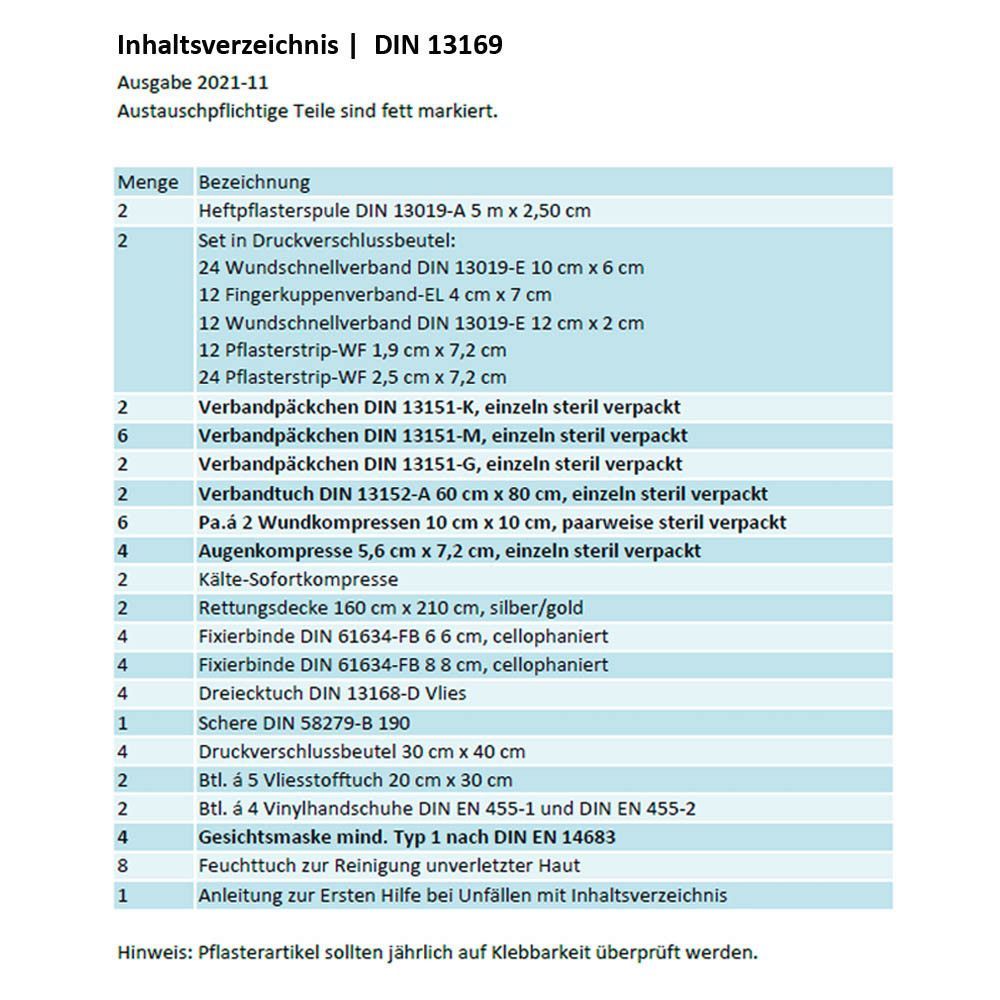 Erste Hilfe Set "GASTRO" aktuelle DIN 13169 Plus 2 für Betriebe inkl. Hygiene-Gel