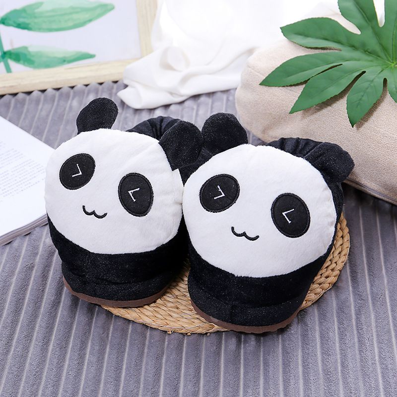 Erwachsene Kinder Panda Plüsch Hausschuhe Warm Slippers Hausschuhe Schwarz