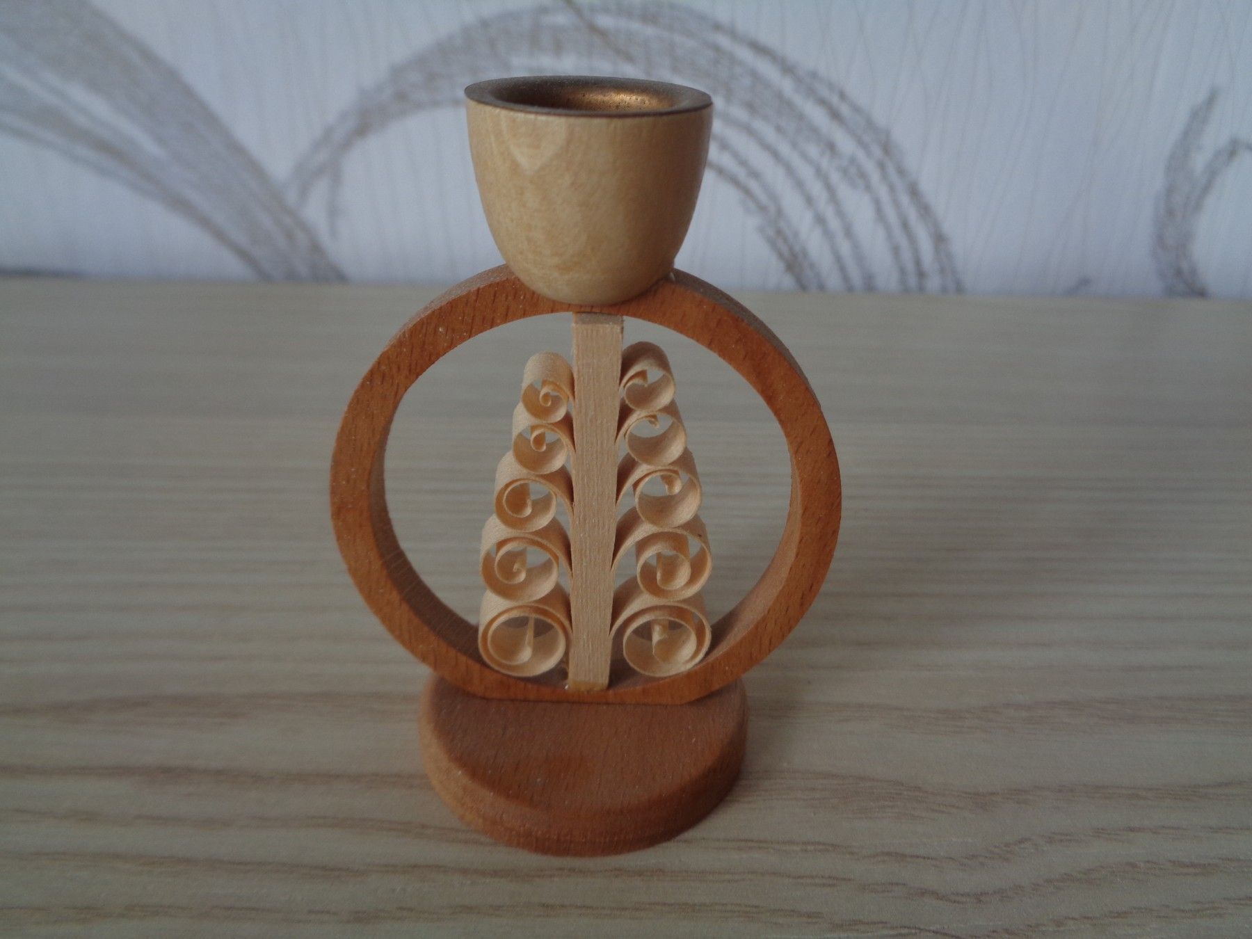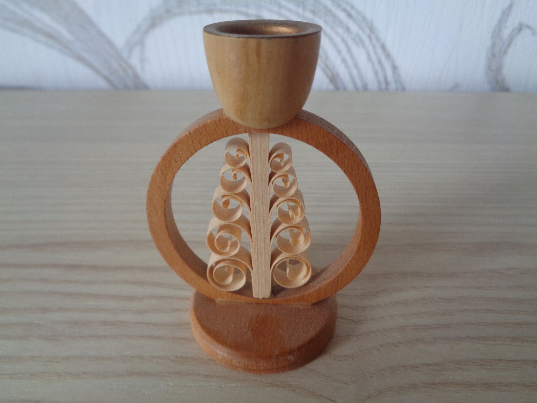 Erzgebirge alter Kerzenhalter, Leuchter -mit Spanbaum natur -Ring