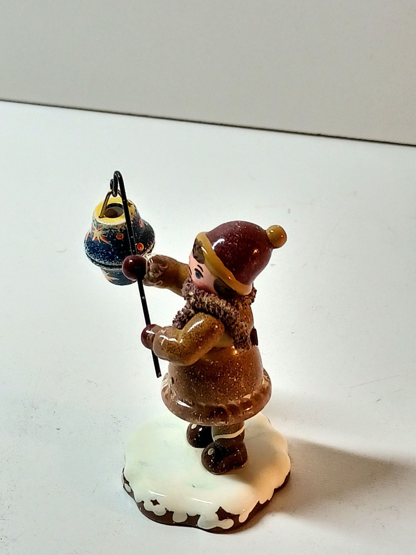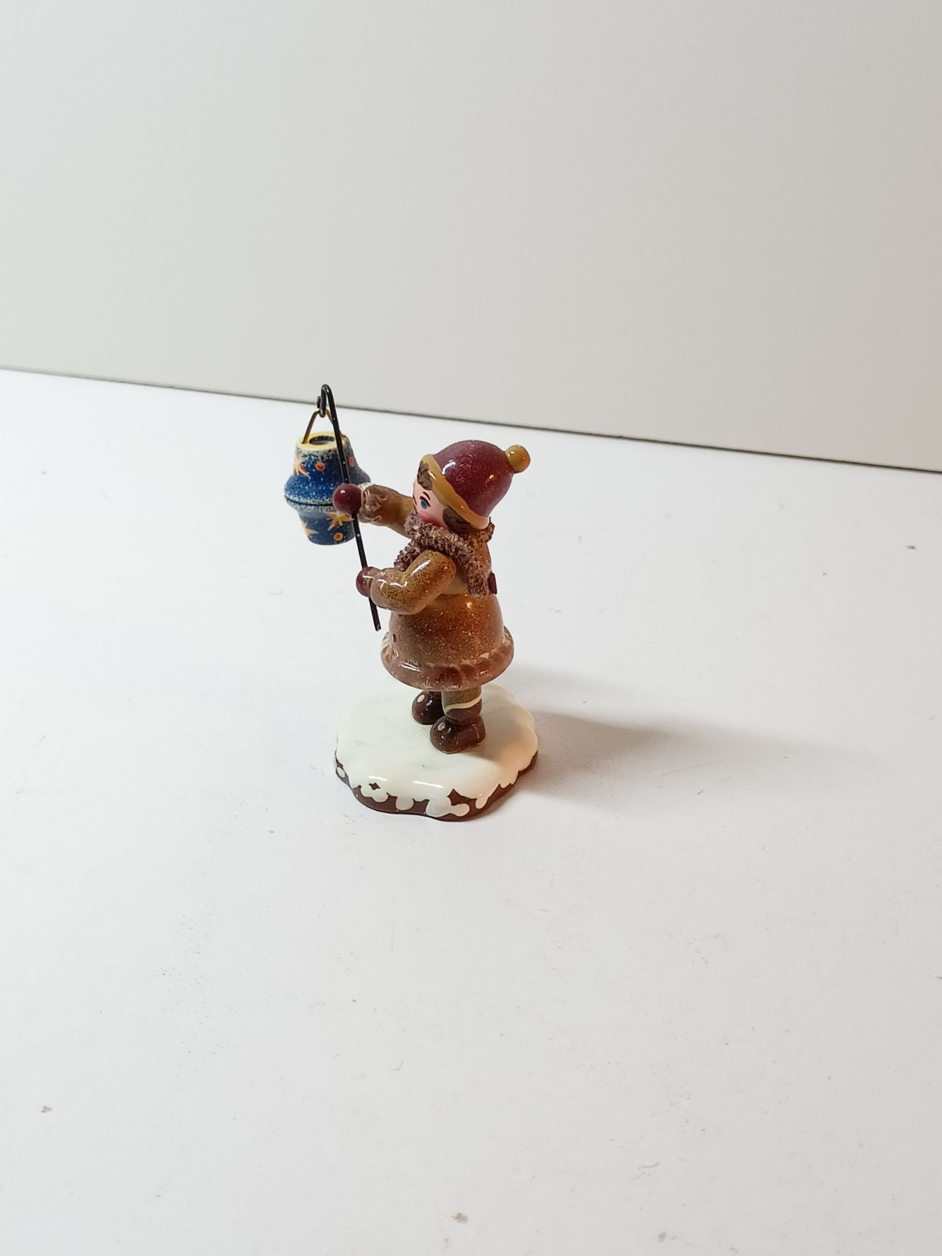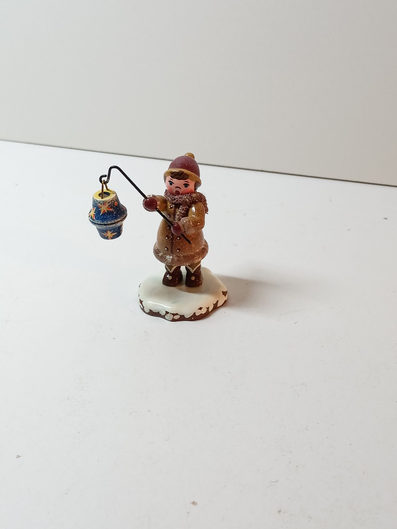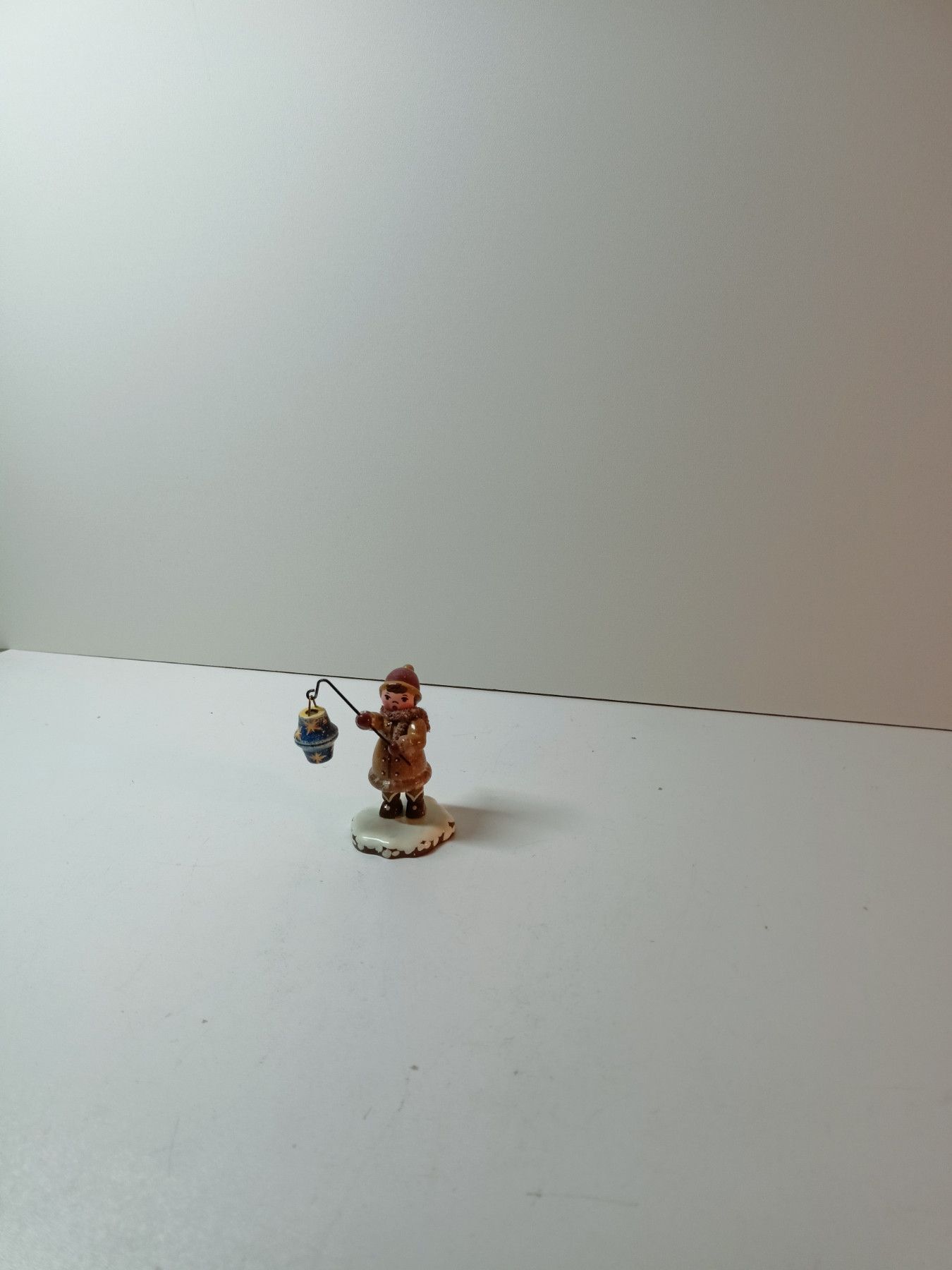 Erzgebirge Junge mit Laterne- Hubrig Winterkinder - Holzfigur ca. 5 cm - auf Schnee