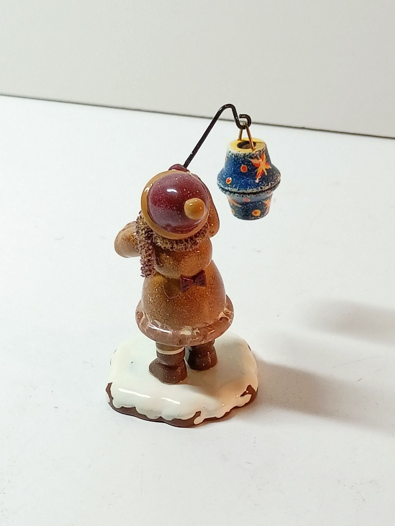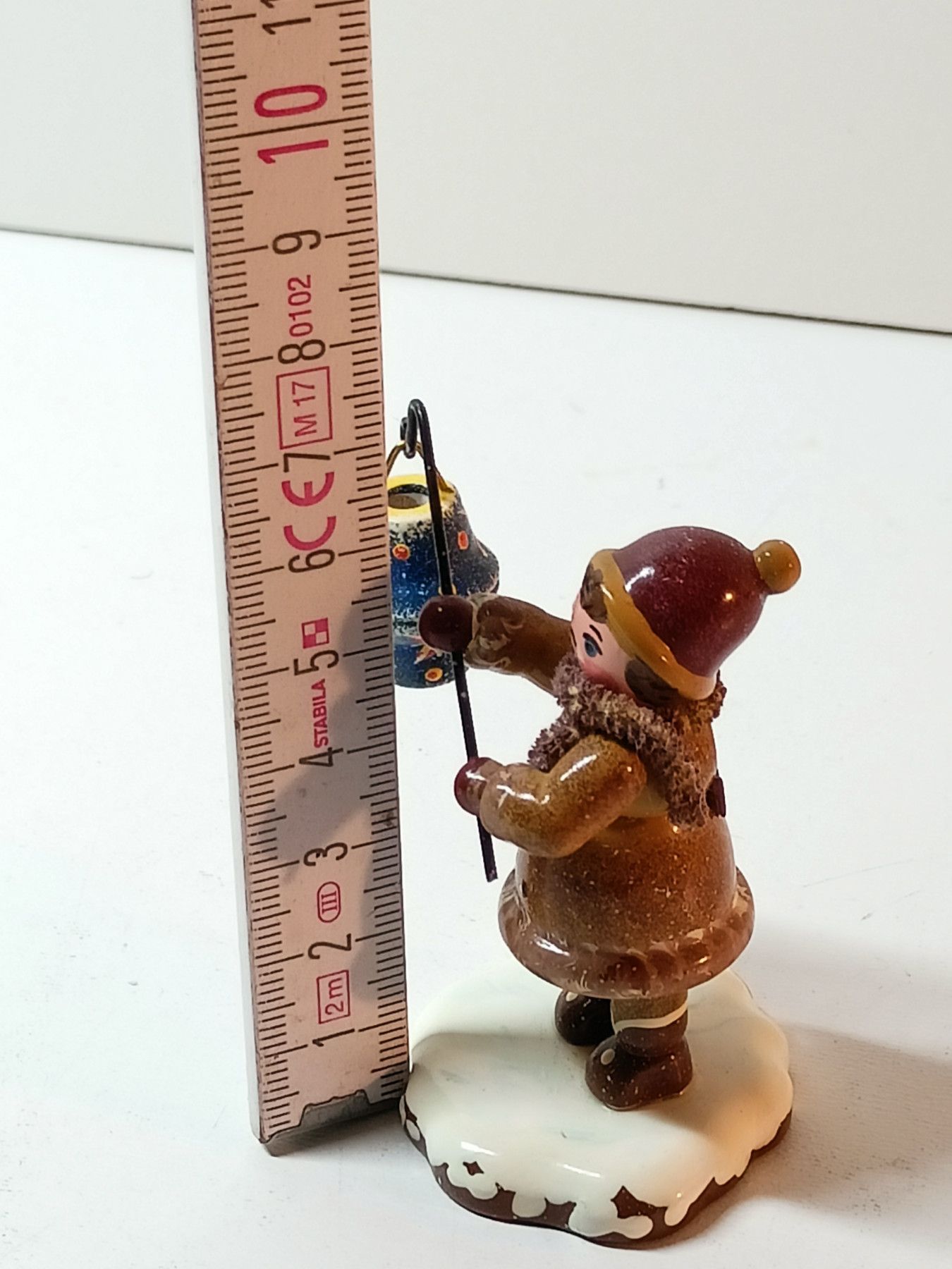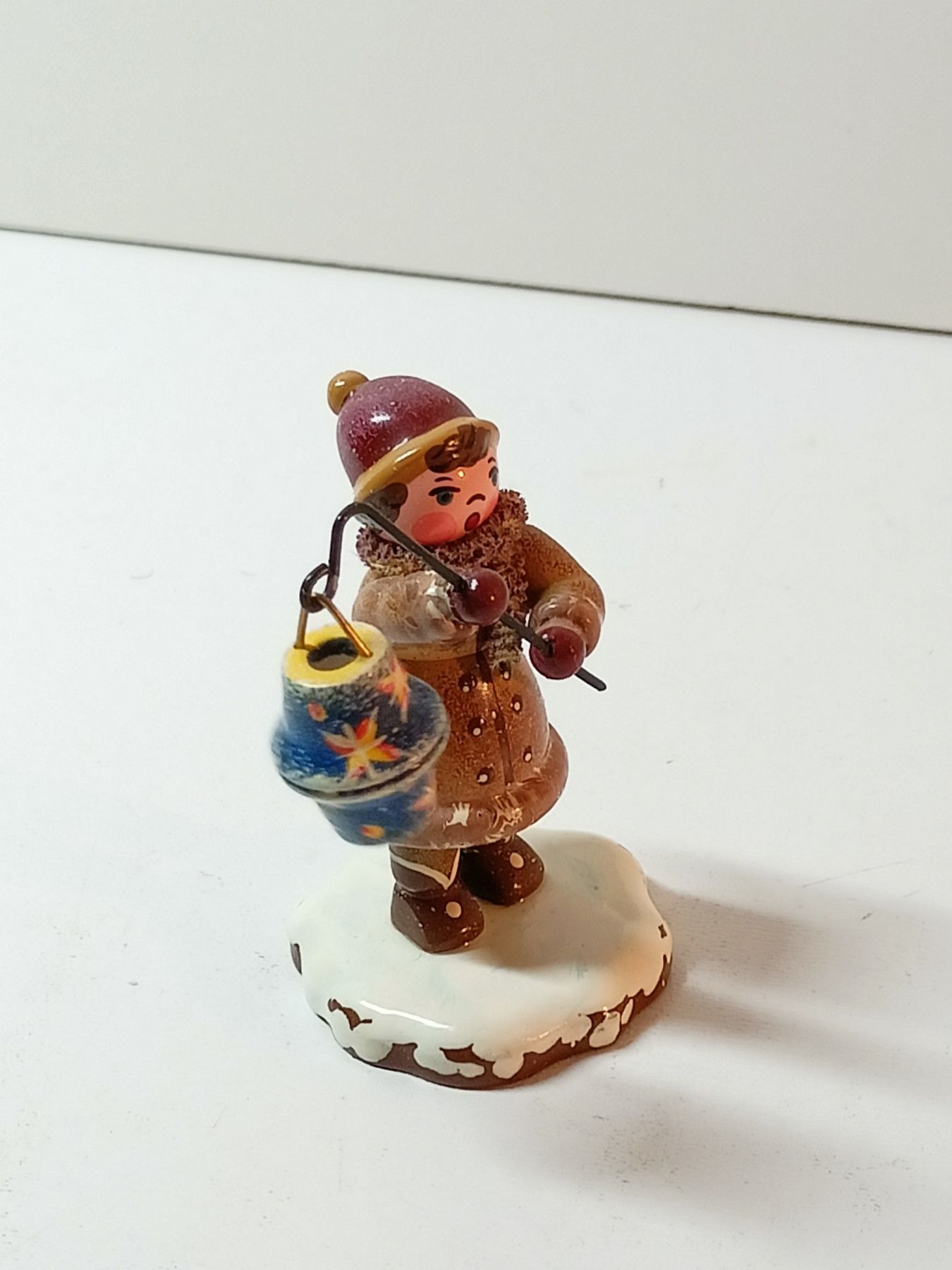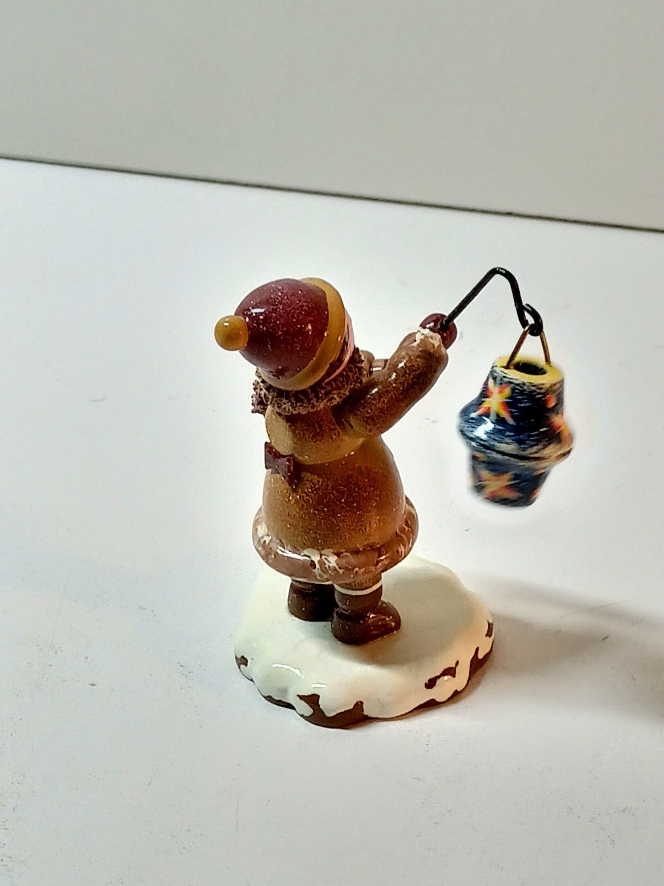 Erzgebirge Junge mit Laterne- Hubrig Winterkinder - Holzfigur ca. 5 cm - auf Schnee