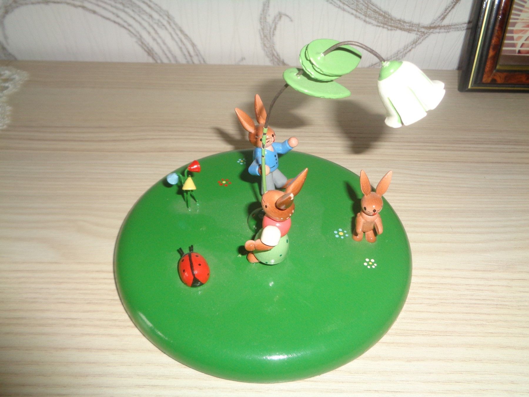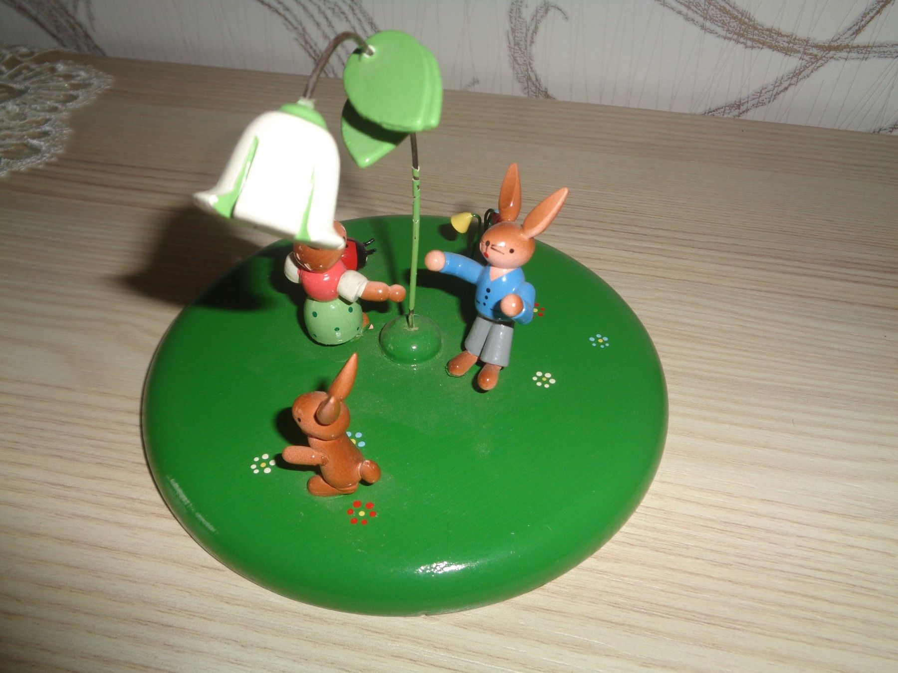 erzgebirgische Handarbeit esco- 2 Hasen auf Wiese