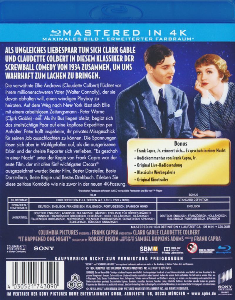 Es geschah in einer Nacht (Blu-ray Mastered in 4K) - Plaion Pi