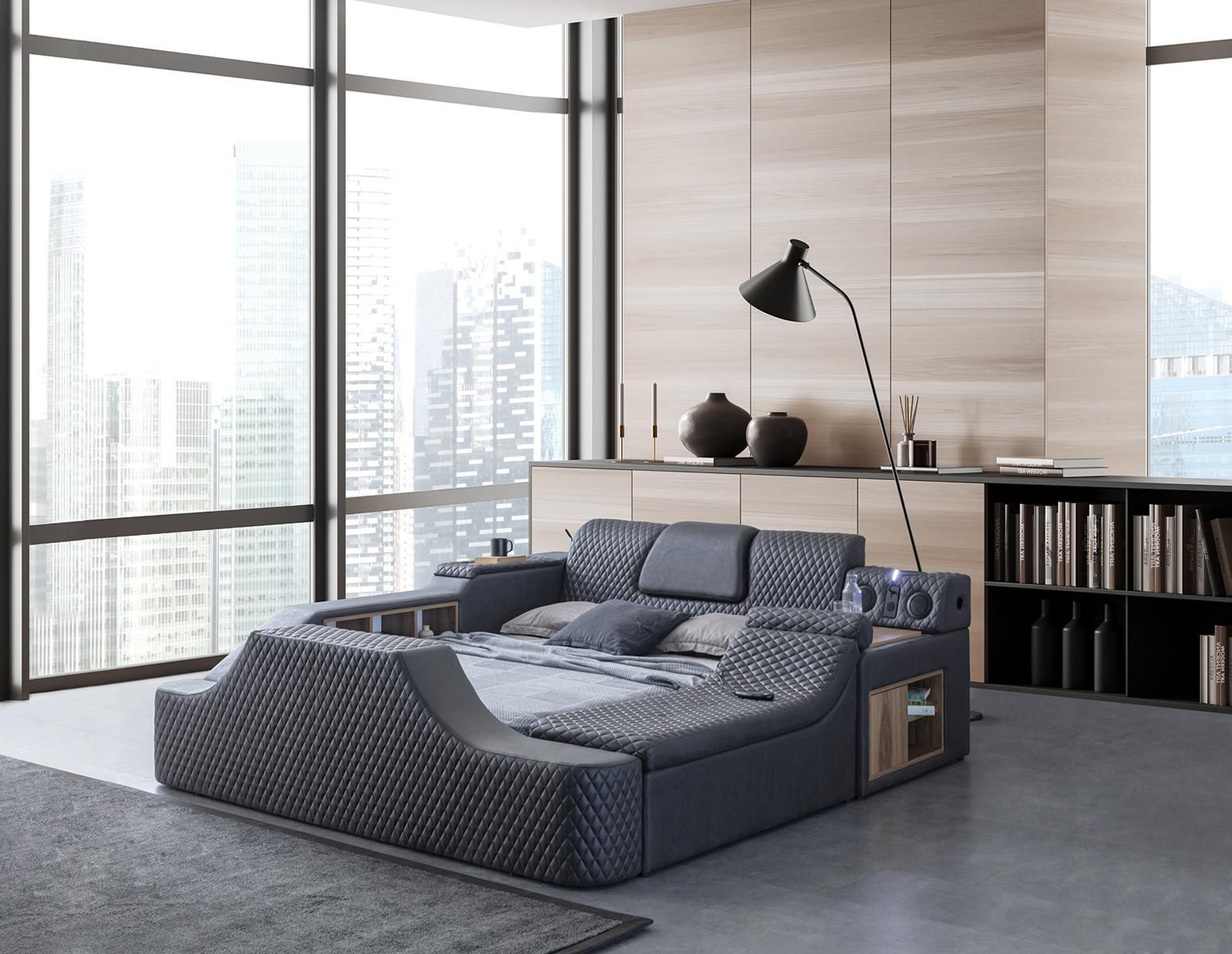 Escape Luxus Bett mit Massageliege und TV Lift 160x200 in Anthrazit