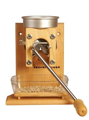 Eschenfelder Kornquetsche Wandmodell Aluminiumtrichter, inkl. Glasschale und Bürste