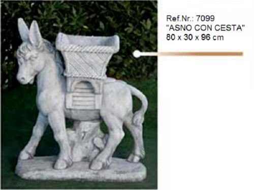 Der Esel mit den Namen „ ASNO CON CESTA “ hat einen Pflanzkübel auf den Rücken. Das ist ein antiker Guss aus Witterung - und frostbeständigem Weißstein und in den Farben Grau, Braun oder Ocker erhältlich. Diese Skulptur wird in aufwendiger Handarbeit in Andalusien hergestellt und verleiht jedes Anwesen oder Terrasse einen mediterranen Touch.