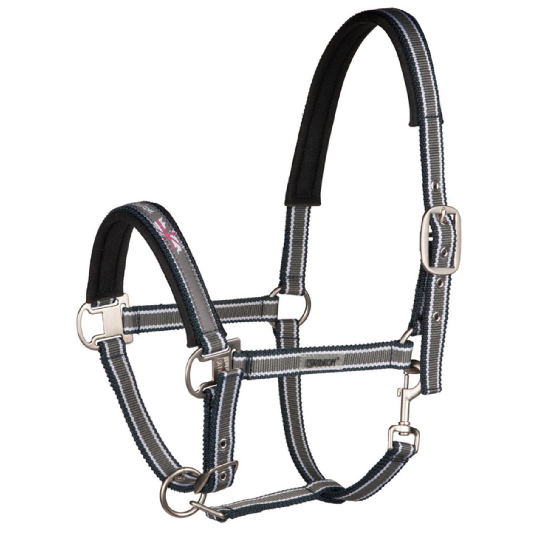 Eskadron Halfter Pin Buckle Next Generation · Qualitätshalfter aus reißfestem Gurtband · weiche Nasen- und Genickpolsterung · 2-fach verstellbar – links am Genick sowie unten im Kinnbereich durch je eine Dornschnalle · vernickelte, matte Metallbeschläge · Esk
