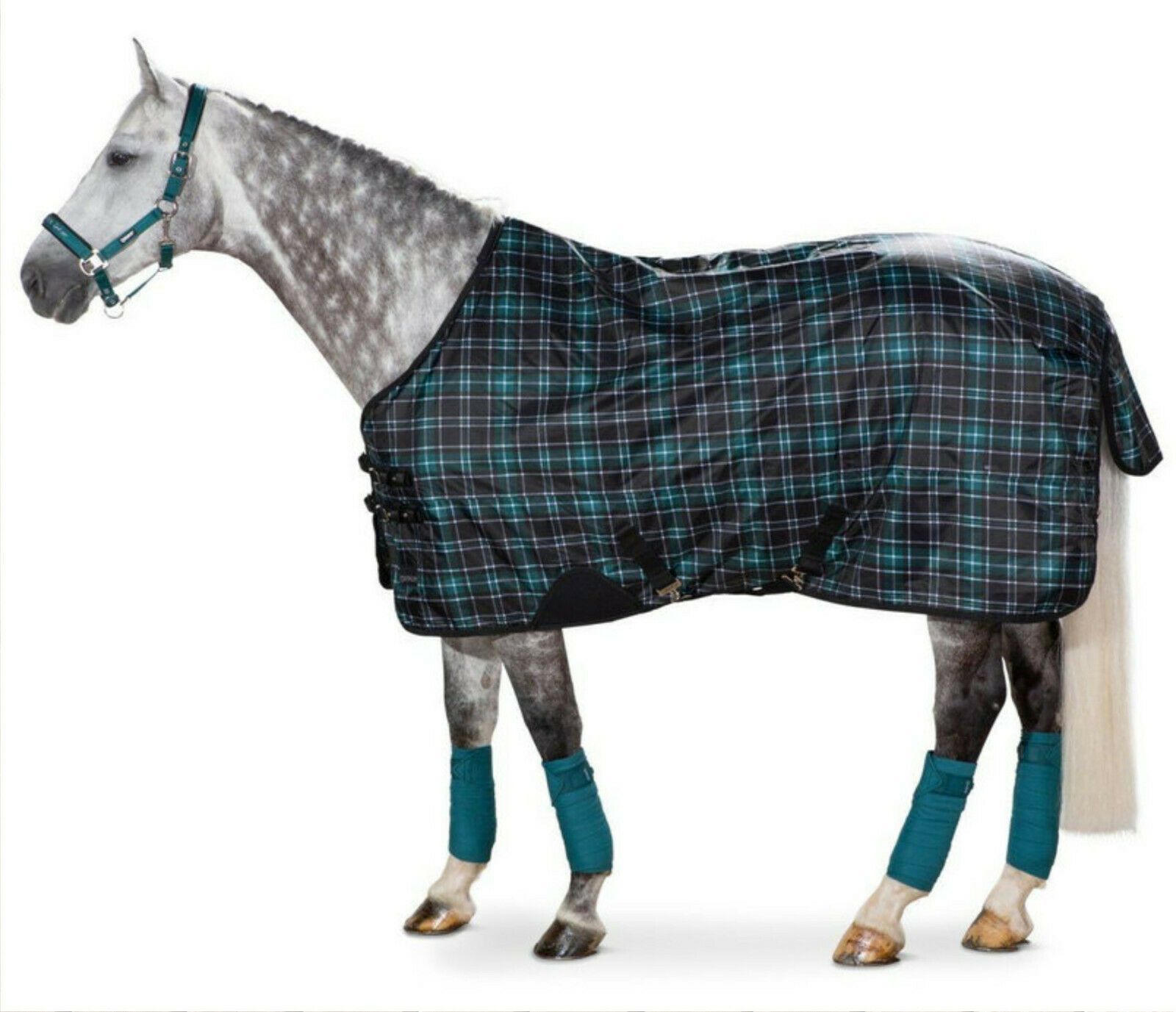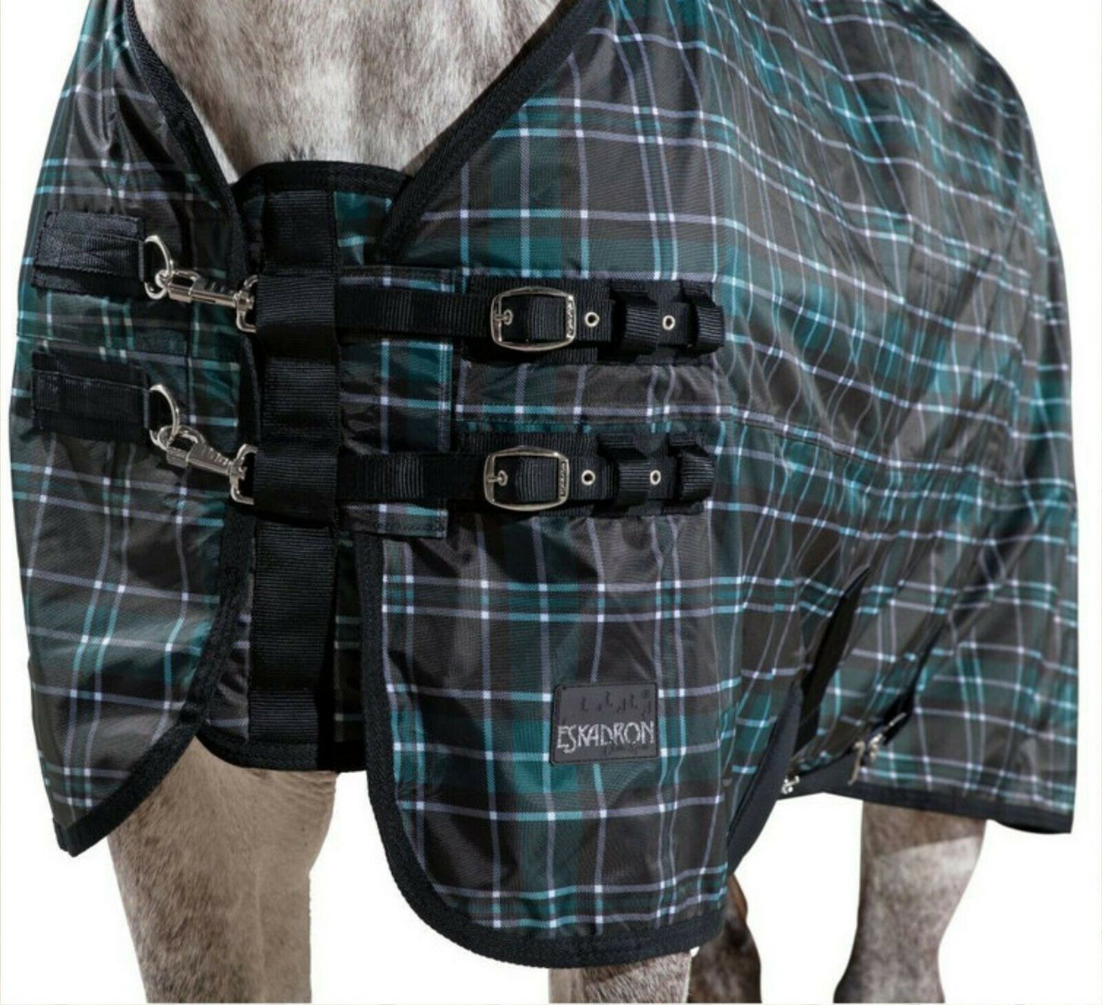 Eskadron Eskadron Turnout Alpha Check Fleecefutter, Regendecke Eskadron caviar-white-teal