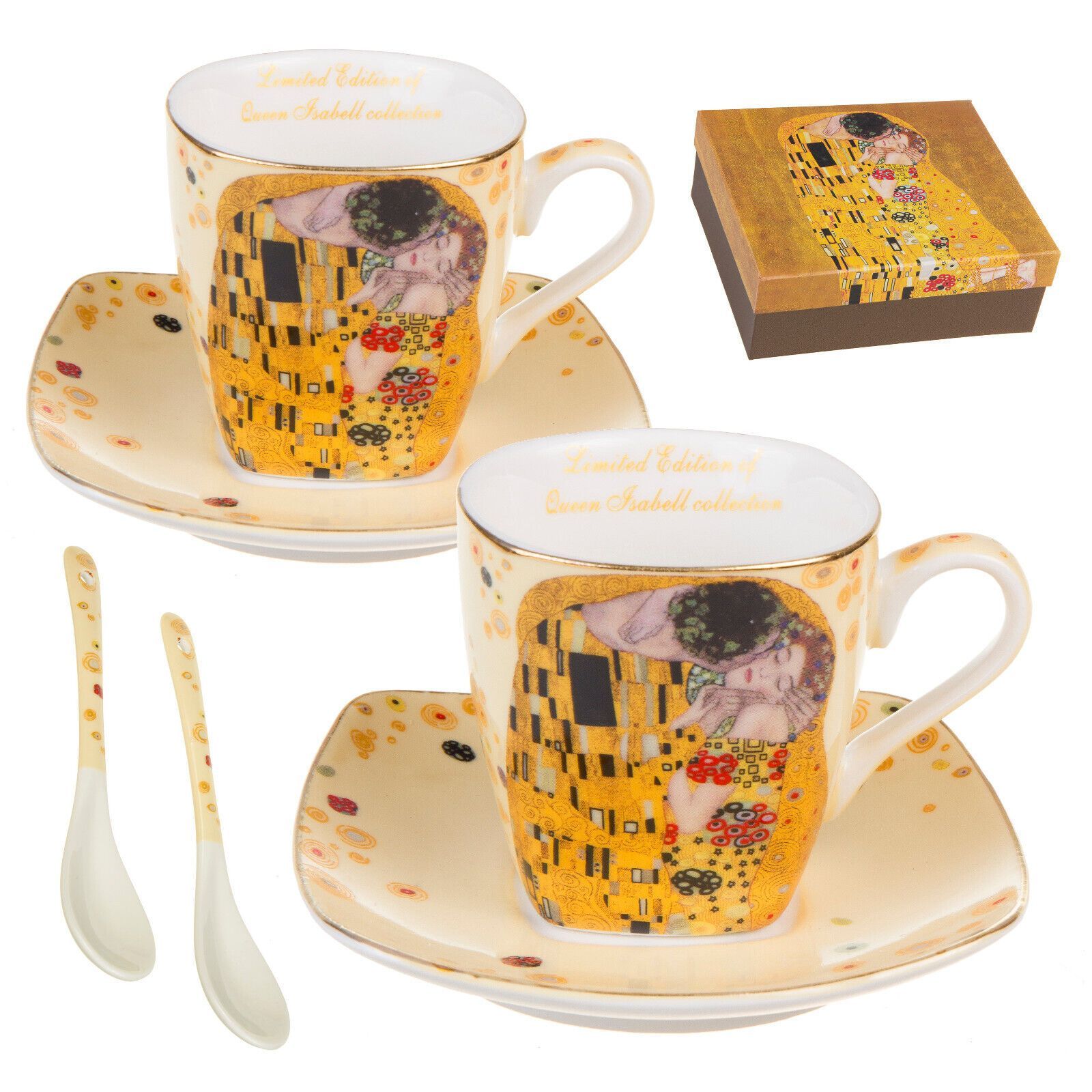 Espresso Porzelan Set für Zwei Personen Tassen mit Untertassen Kaffe Genießen