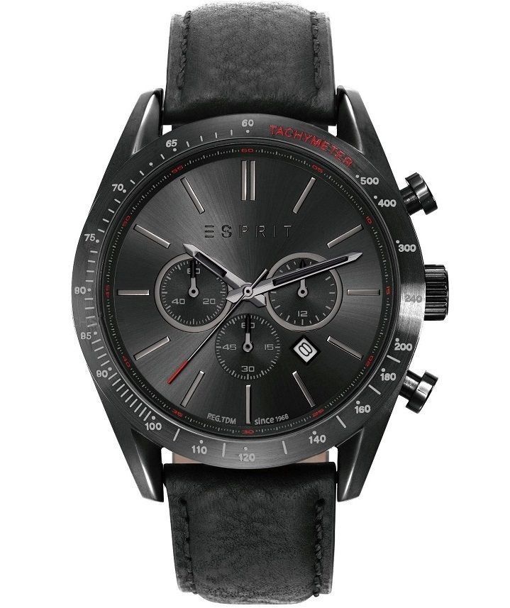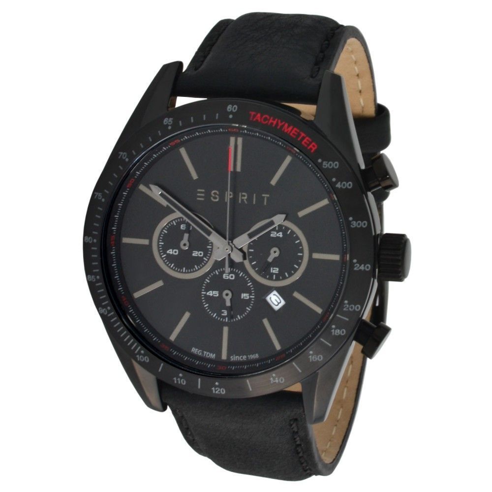 Esprit Esprit Herren Quarz Chronograph ES108811001 schwarzes Echt-Lederband 10 ATM