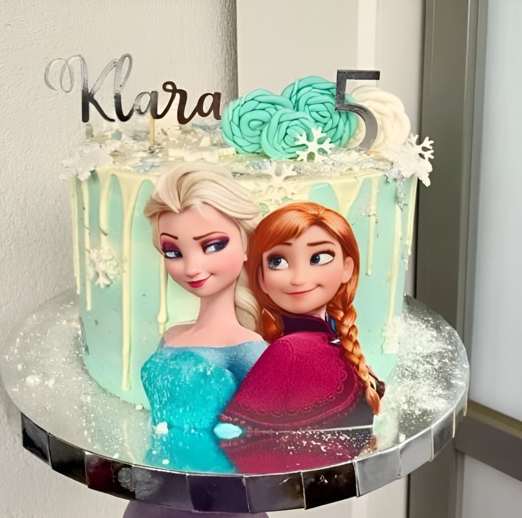 Essbar Frozen Elsa Anna 14cm Zuckermasse Fondant Tortenaufleger Zuckerbild 01