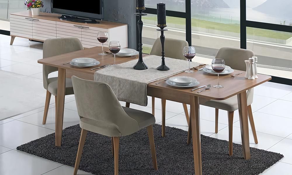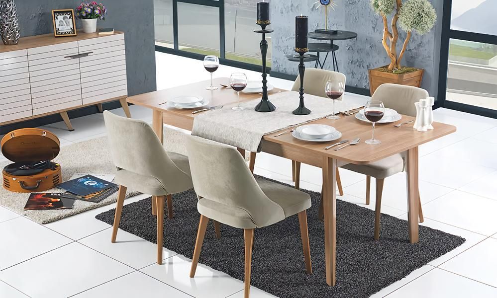 Essgarnitur Esszimmer Esstisch Essgruppe Polsterstühle Tisch + 4 X Lehnstuhl Set
