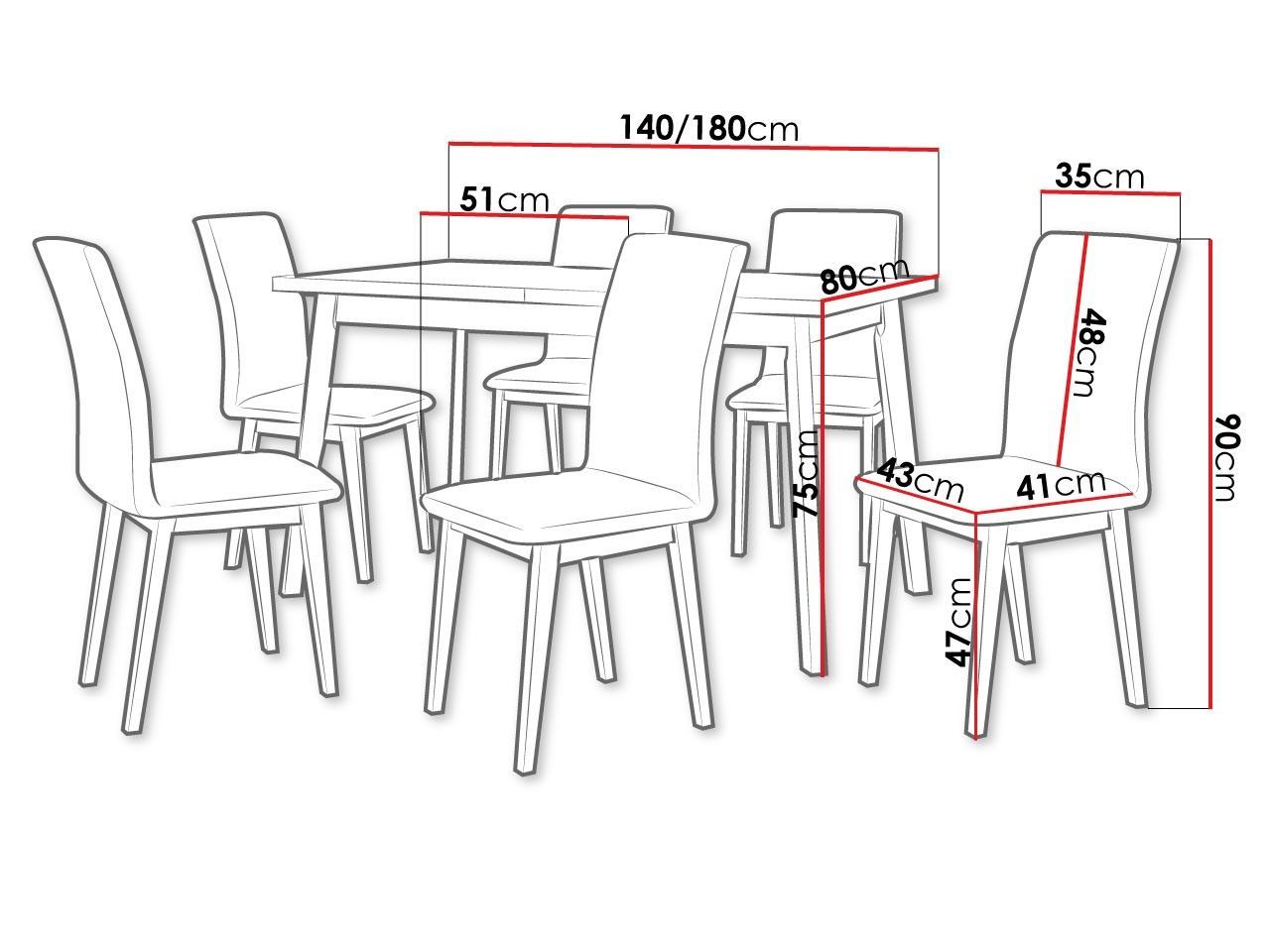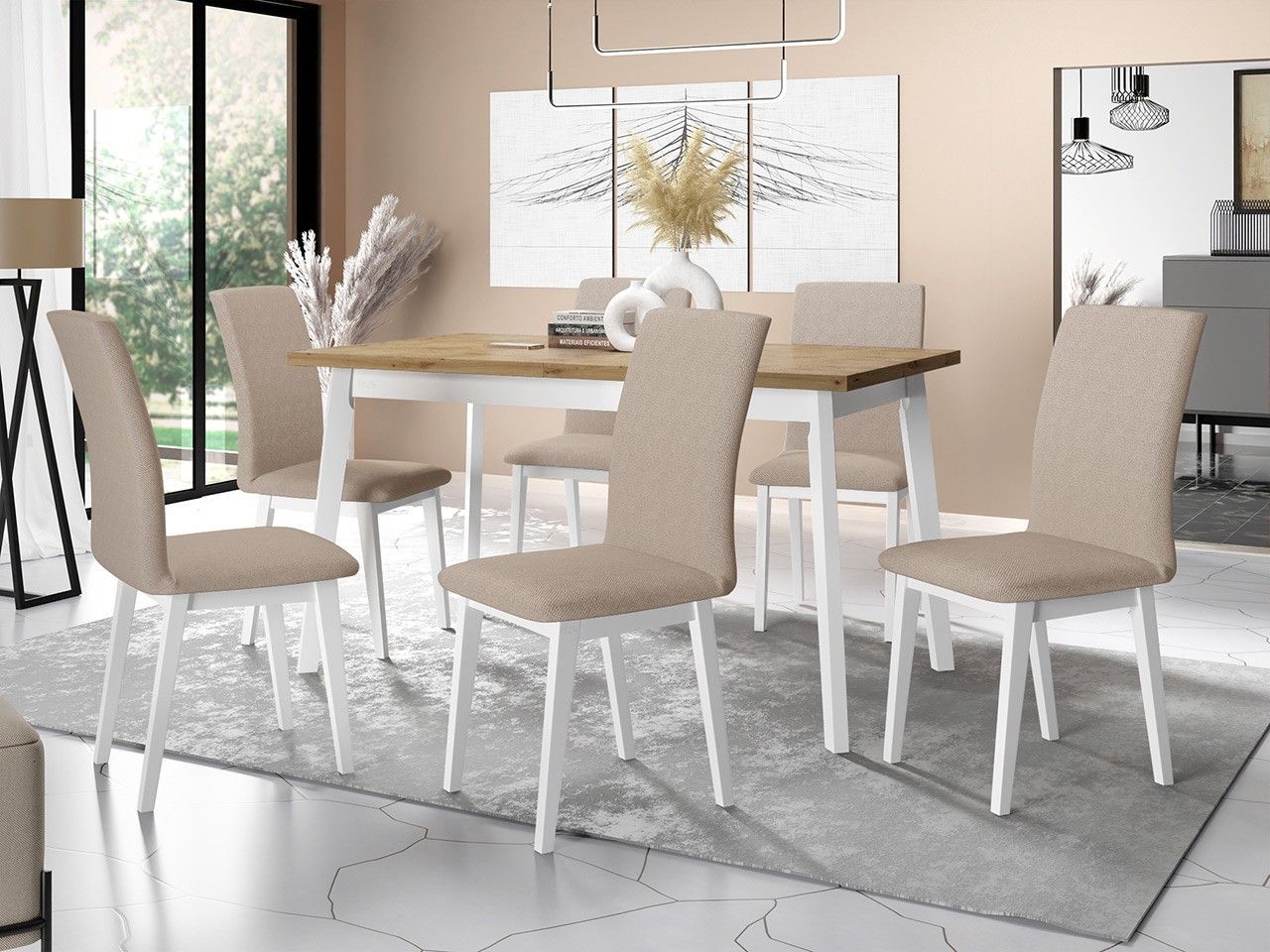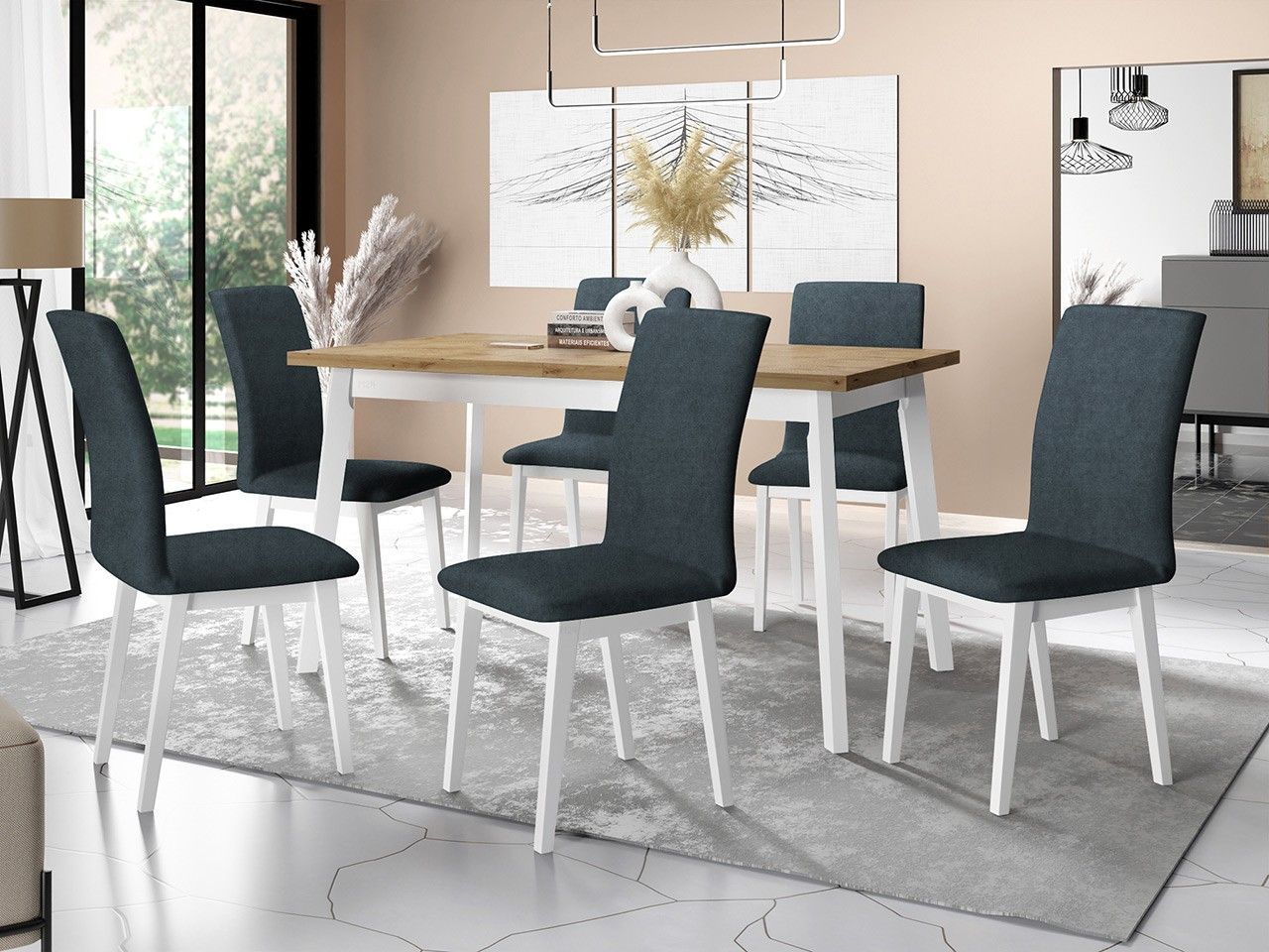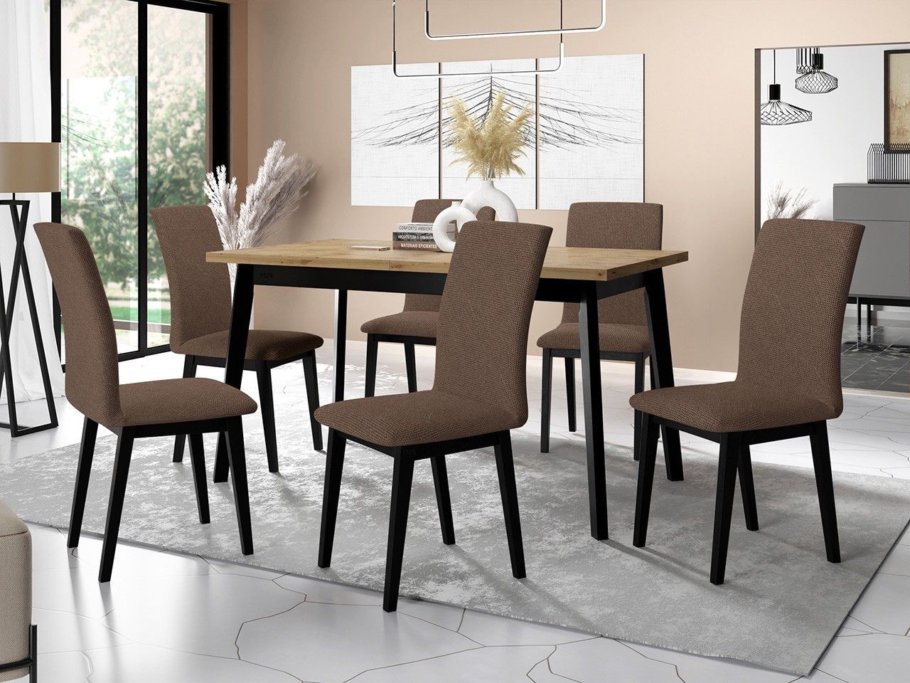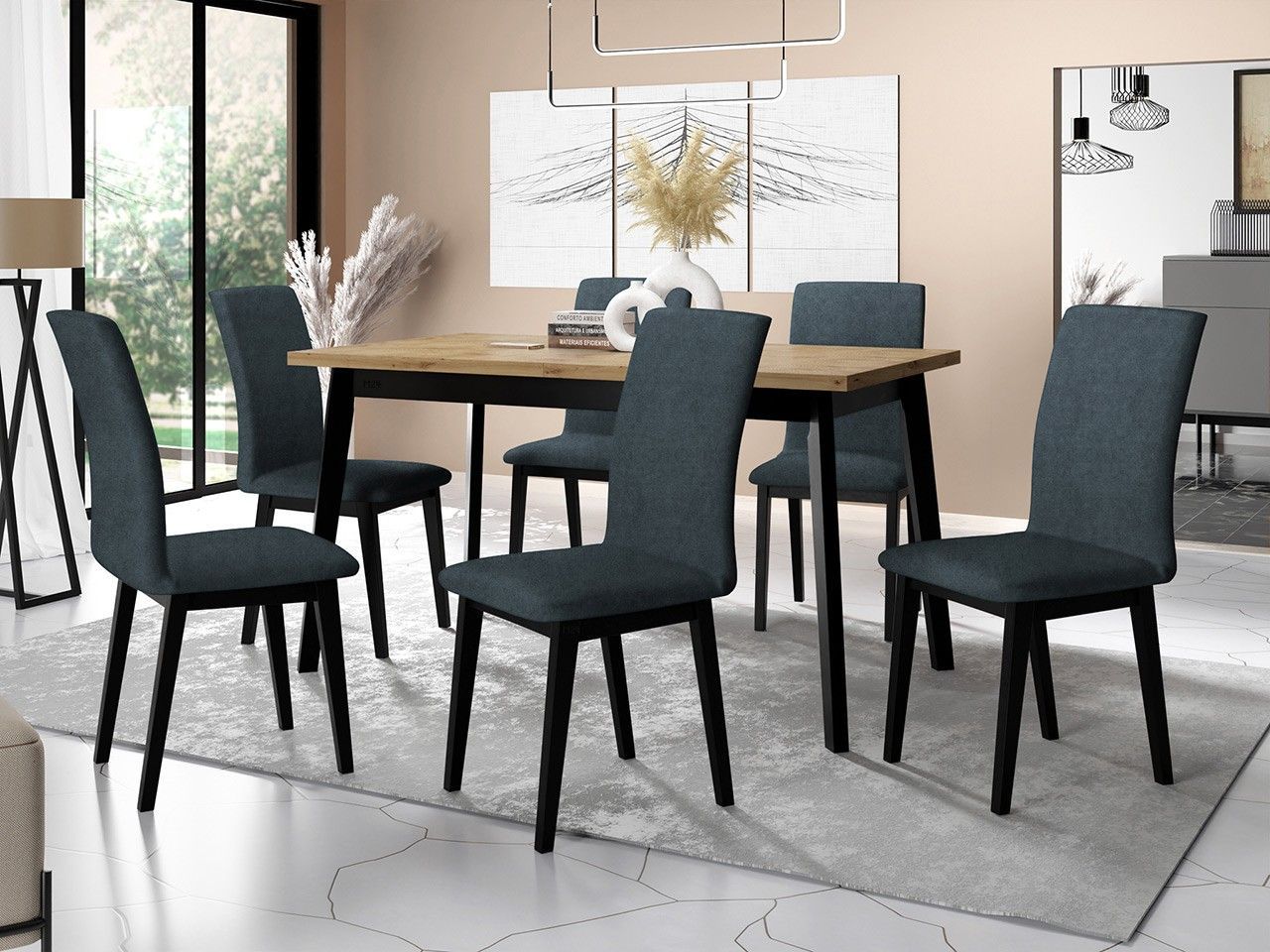 Essgruppe DR-023 Esstisch Oslo V 6x Stühle Luna I 7er-Set Ausziehbarer
