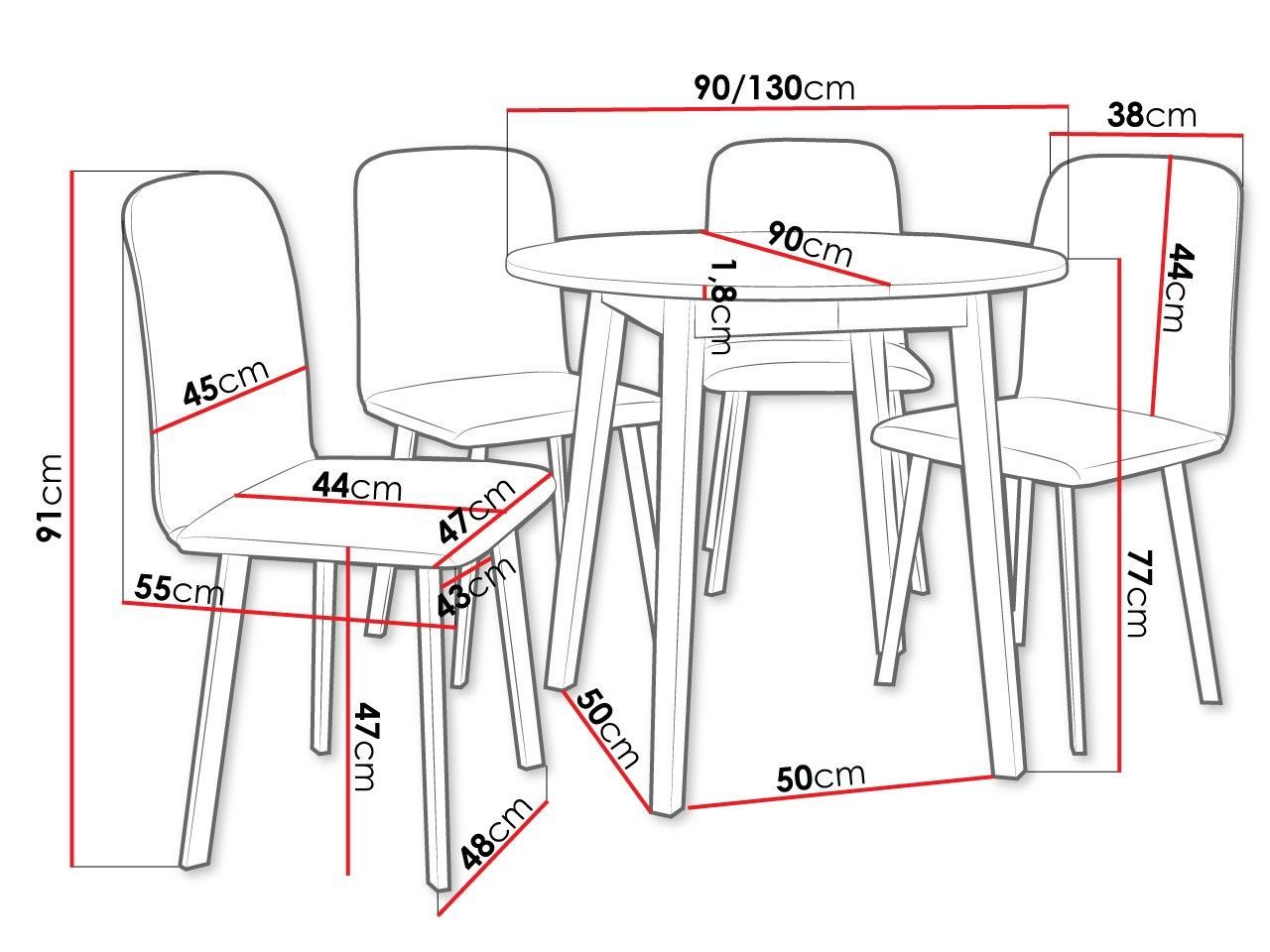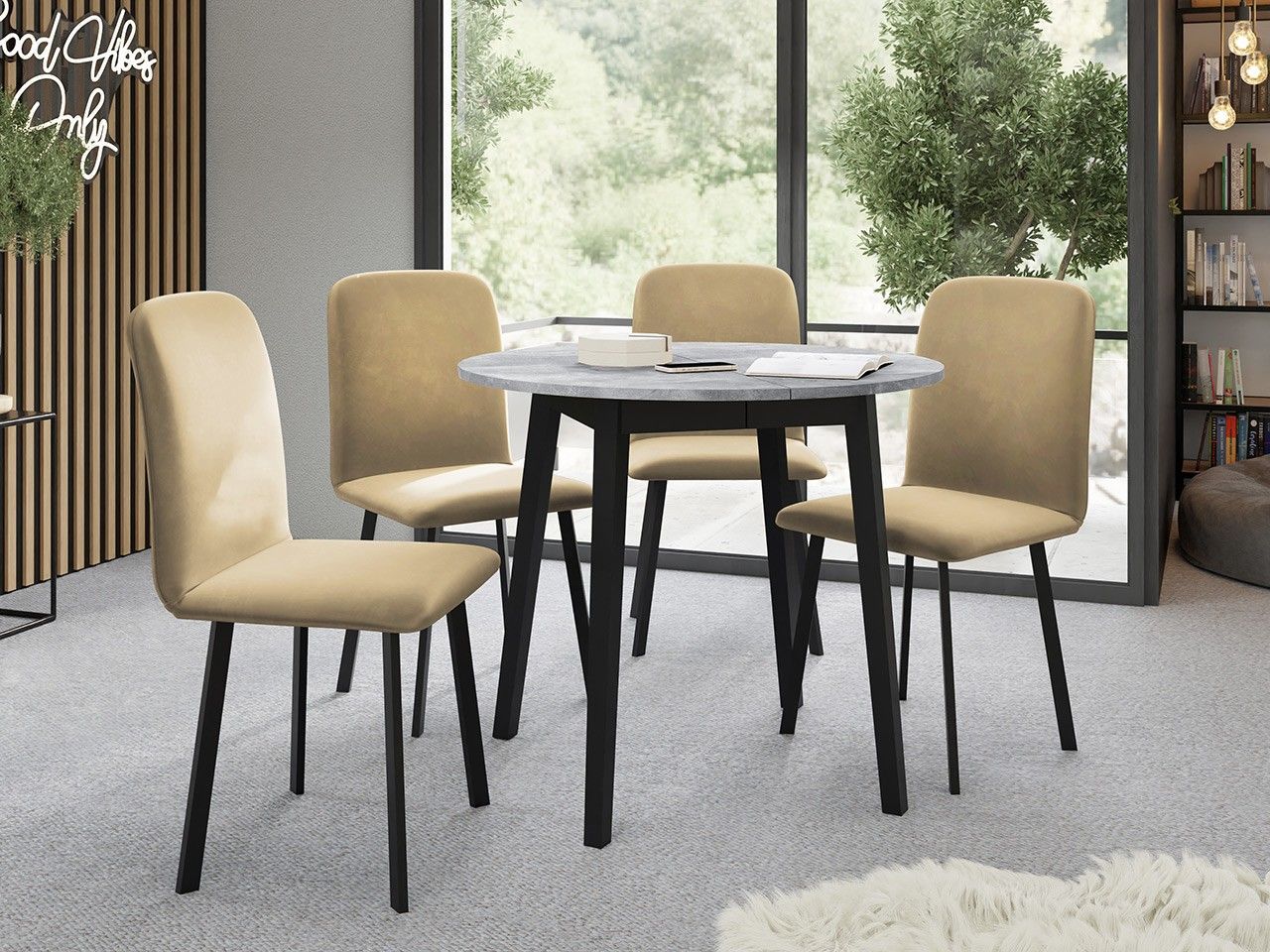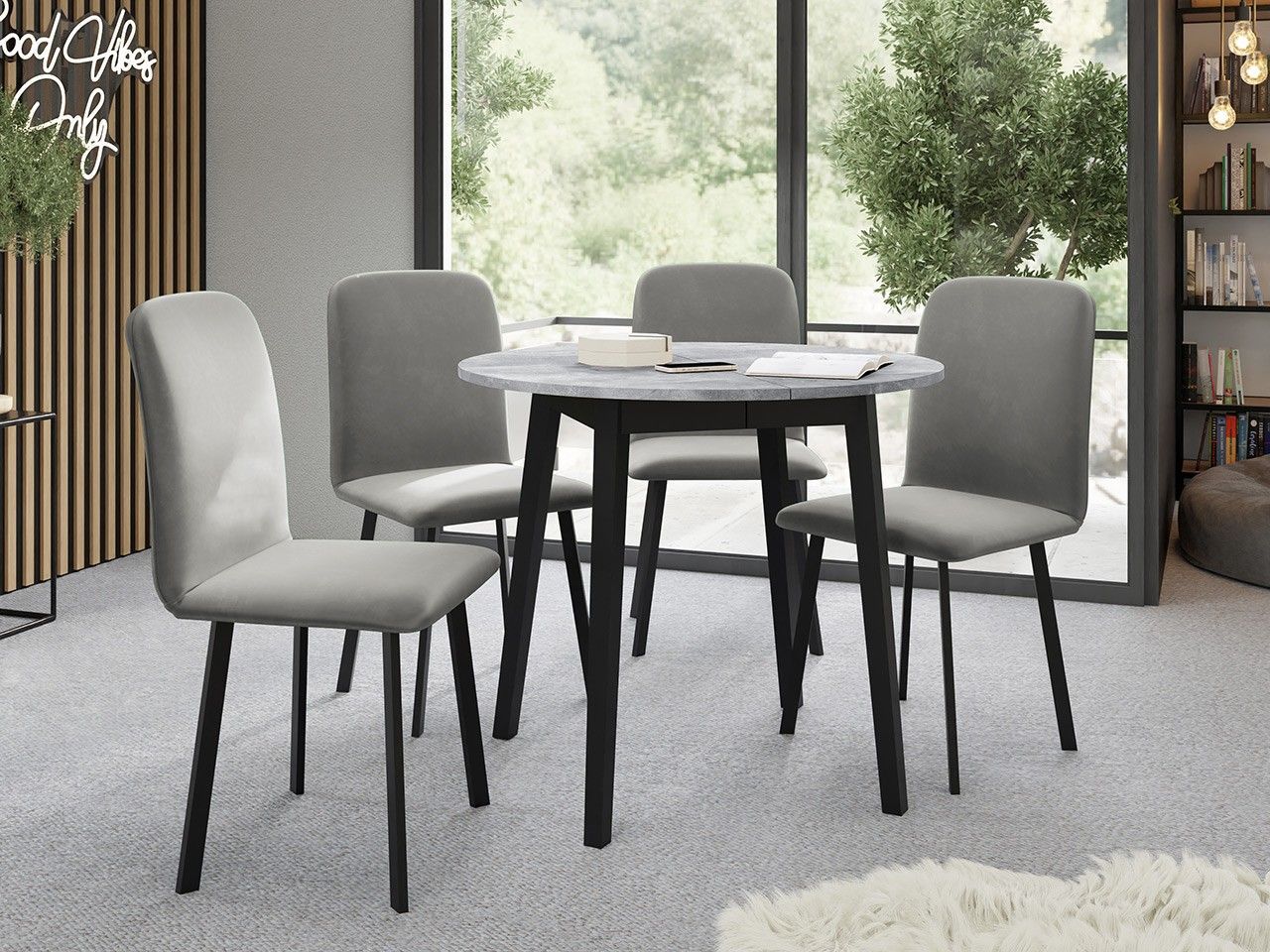 Essgruppe IV Roundtisch Dione S 90 mit 4 Stühle Luke Sitzgruppe 5-teilig Farbauswahl