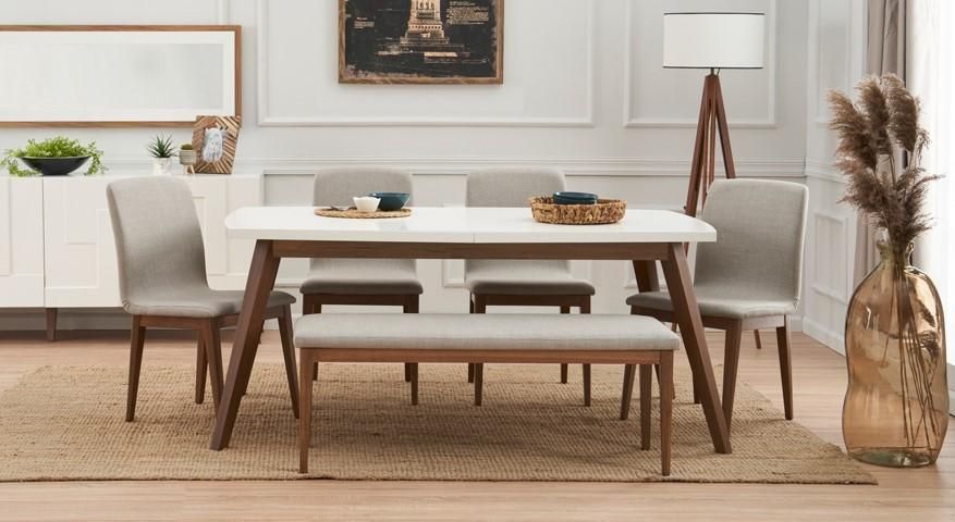 Essgruppe Komplett Esstisch + 4X Stühle Holzmöbel Esszimmer Bank Einrichtung
