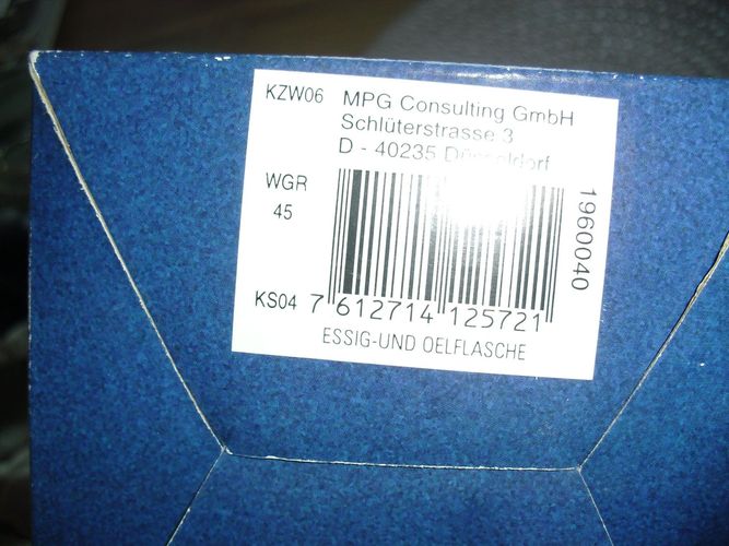Essig Öl Flasche Design f. Esstisch Glas NEU mit Karton