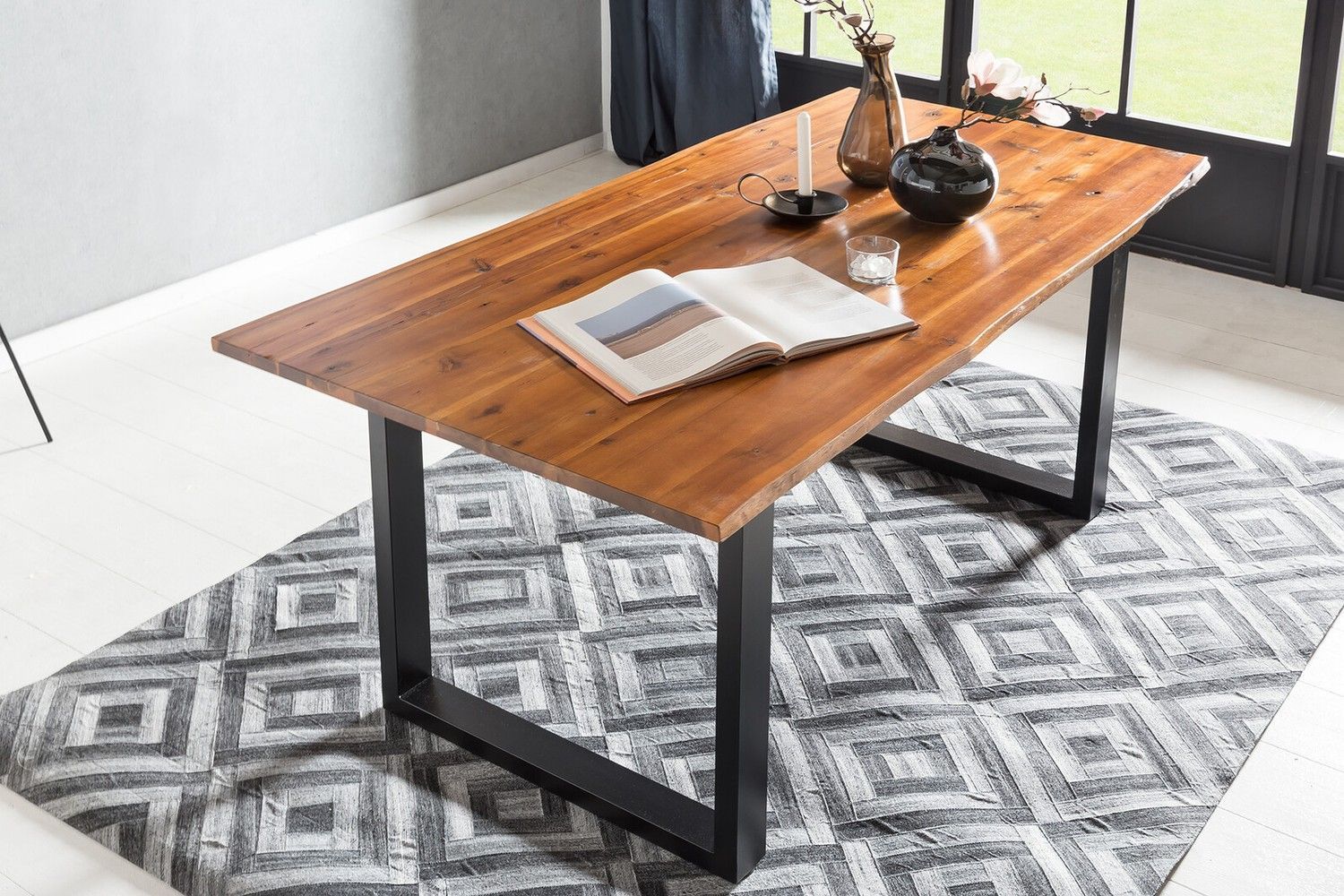 Esstisch 200 x 100 cm Metall und Akazie Cognac und Schwarz