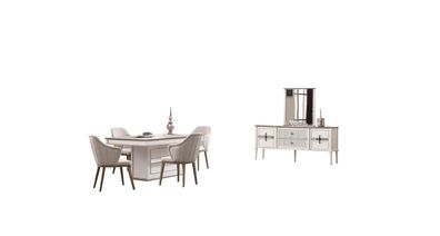 Moderner Esstisch mit Stühlen und Kommode mit Spiegel