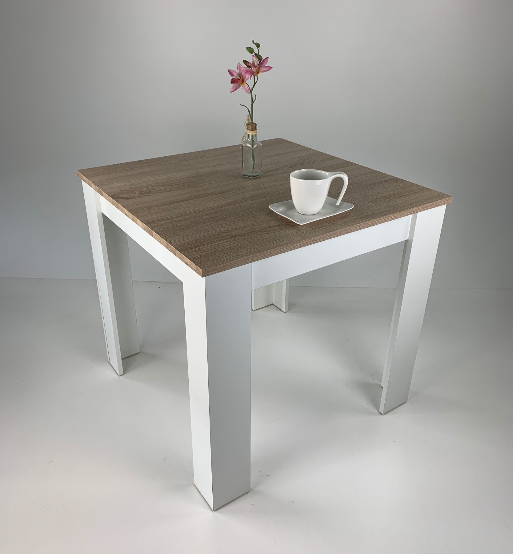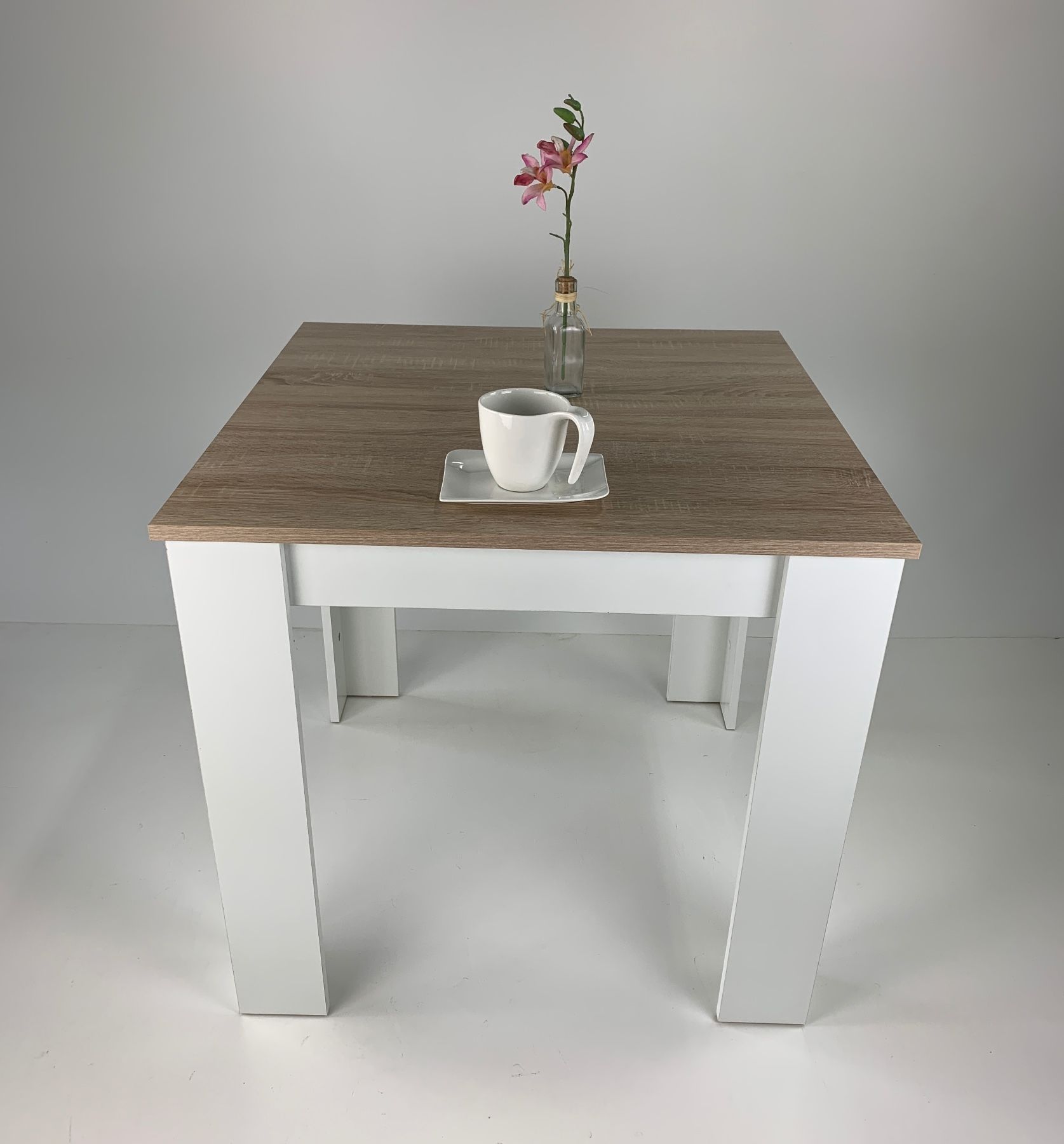 Esstisch 80x80 cm. Sonoma Eiche Weiß Hell Sägerau Landhaus Made in Germany