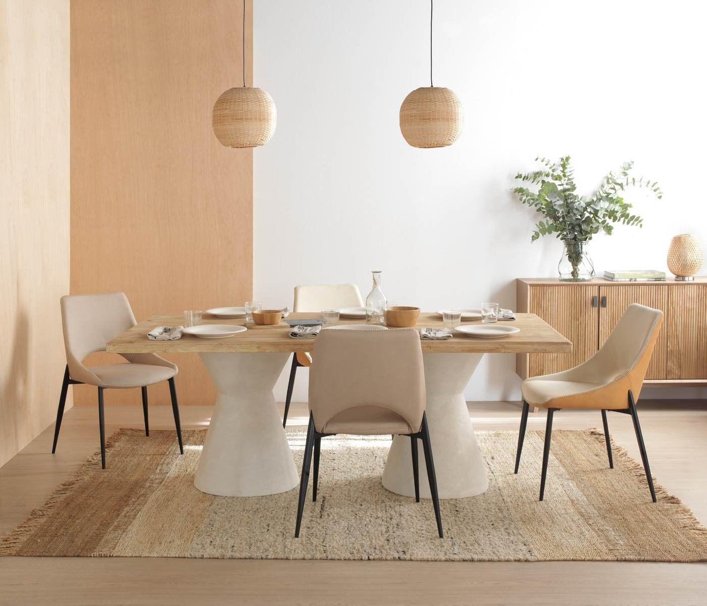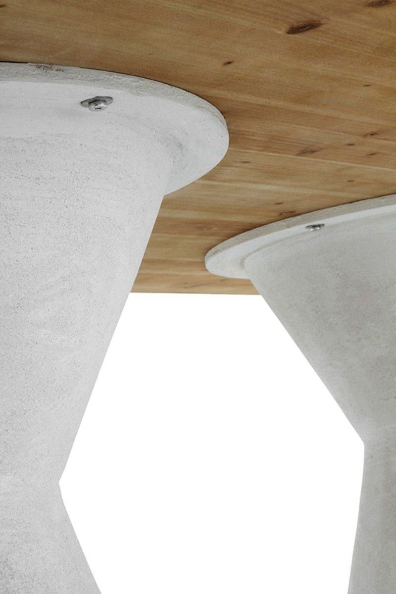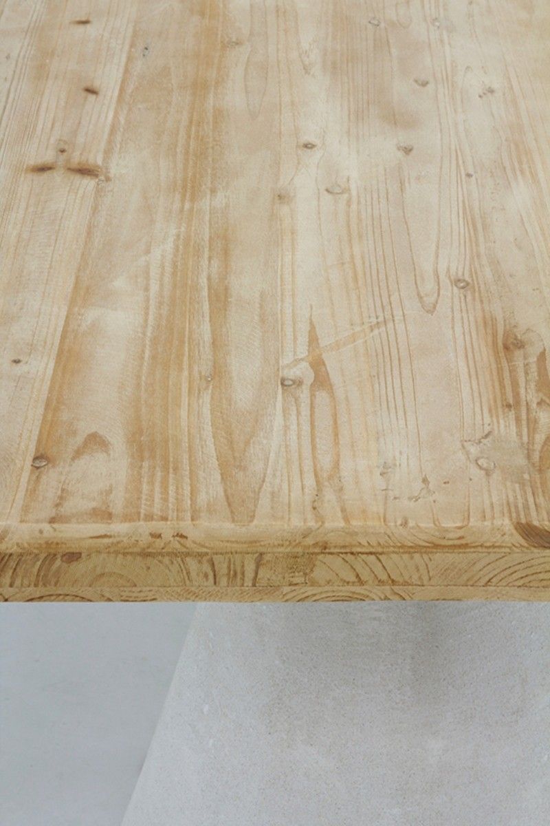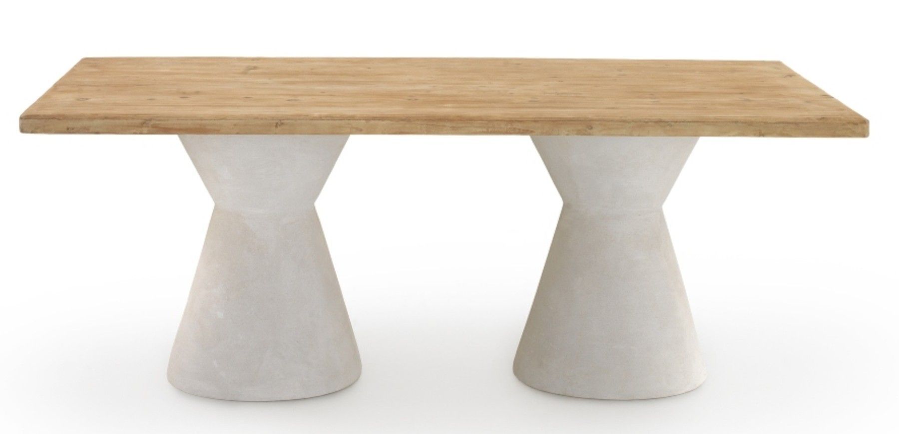 Esstisch aus Fichtenholz und Sockel aus weißem Polyresin