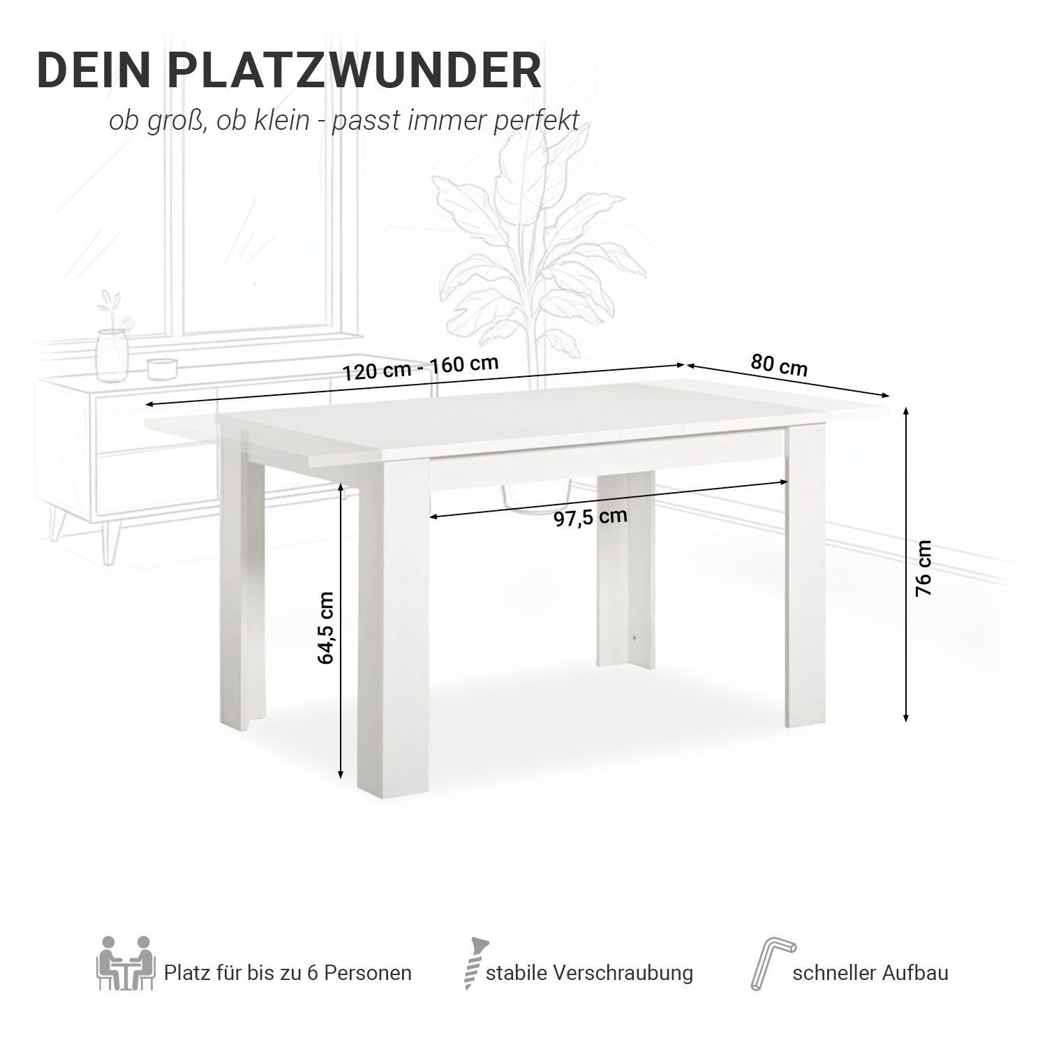 Esstisch ausziehbar 120x80 cm Weiß oder Artisan Eiche Wohnzimmertisch