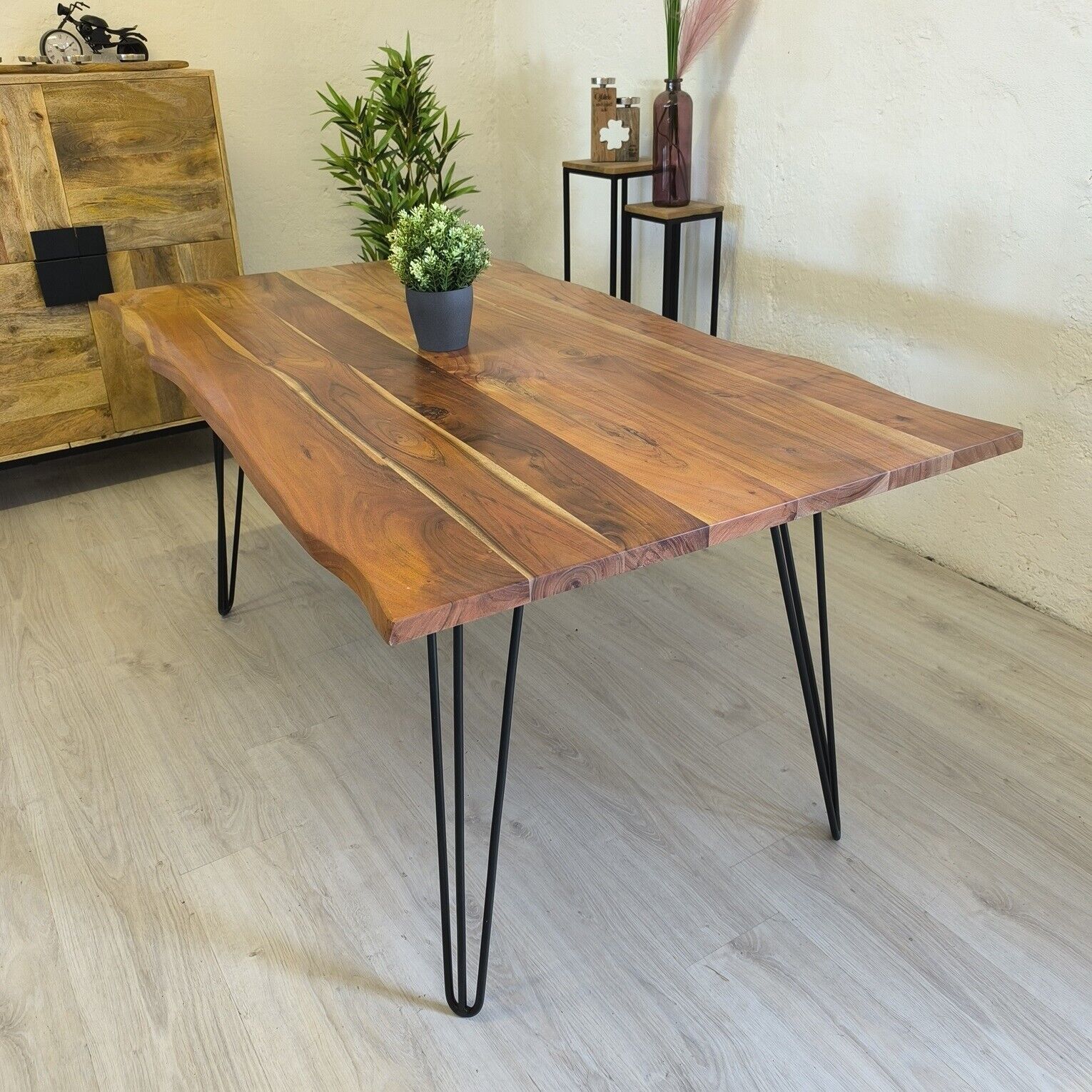 Esstisch Bene 120 / 140 / 160 cm Akazie mit Baumkante und Pin Legs Massivholz