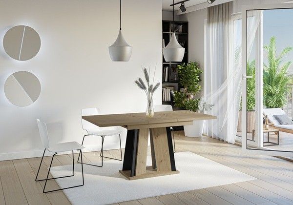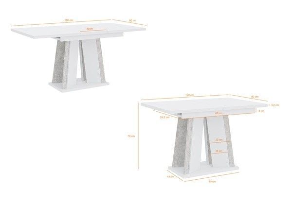 Esstisch DOHA II Laminatplatte 16 mm Hochglanz: Spanplatte Acryl 16 mm Tischplatte und Basis sind verdickt (32 mm) ABS-Rand, Antirutschfüße Ausziehbarer Tisch Antirutschfüße (4 Stück) + zwei Regulierbare Plastikfüße Einlegeplatte befindet sich unter der Tischplatte. Spezifikation Maße Länge: 120 cm