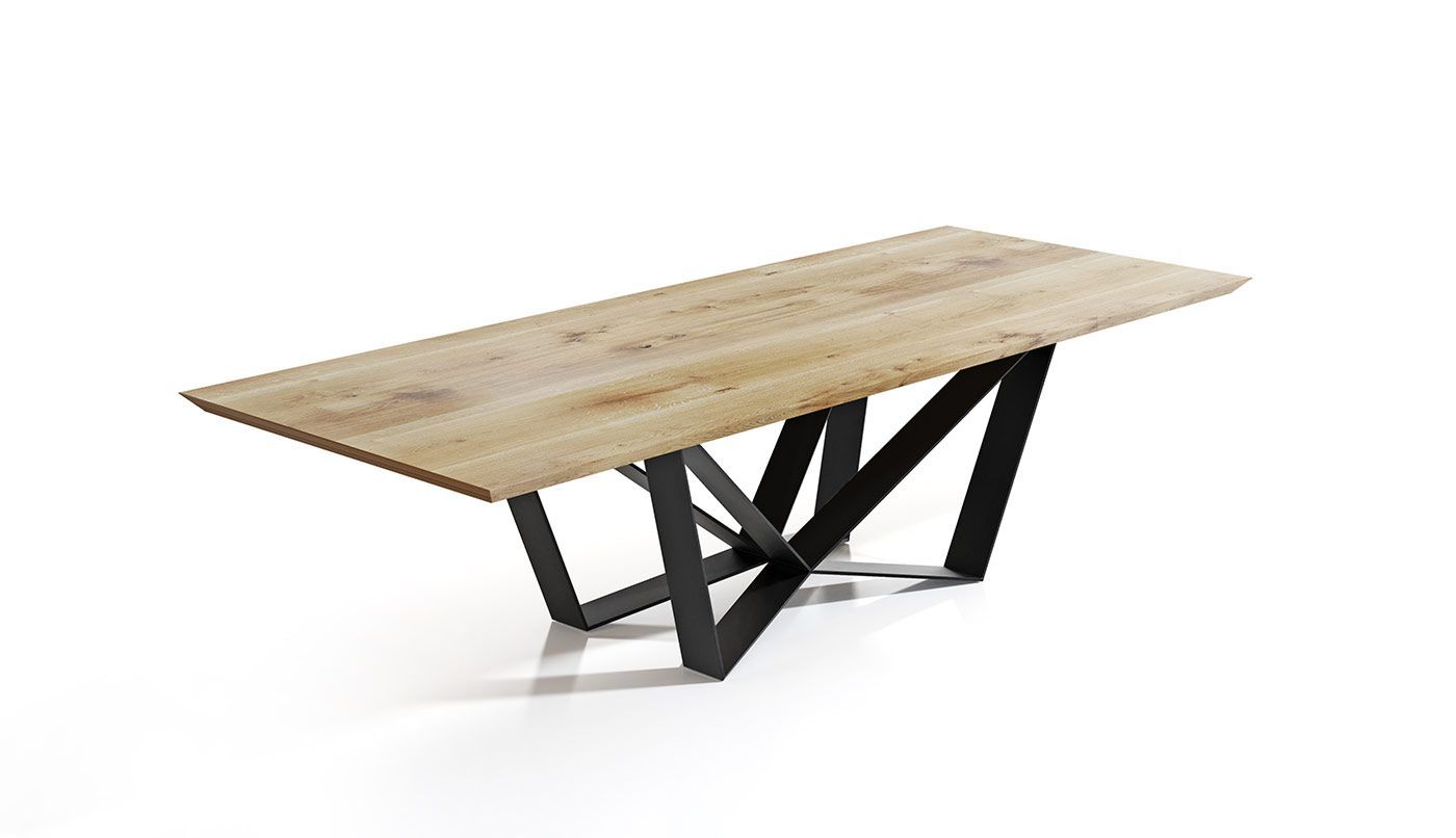 Esstisch Edder 300 x 130 cm Tischplatte Eiche Massiv Schweizer Kante Metallfuß