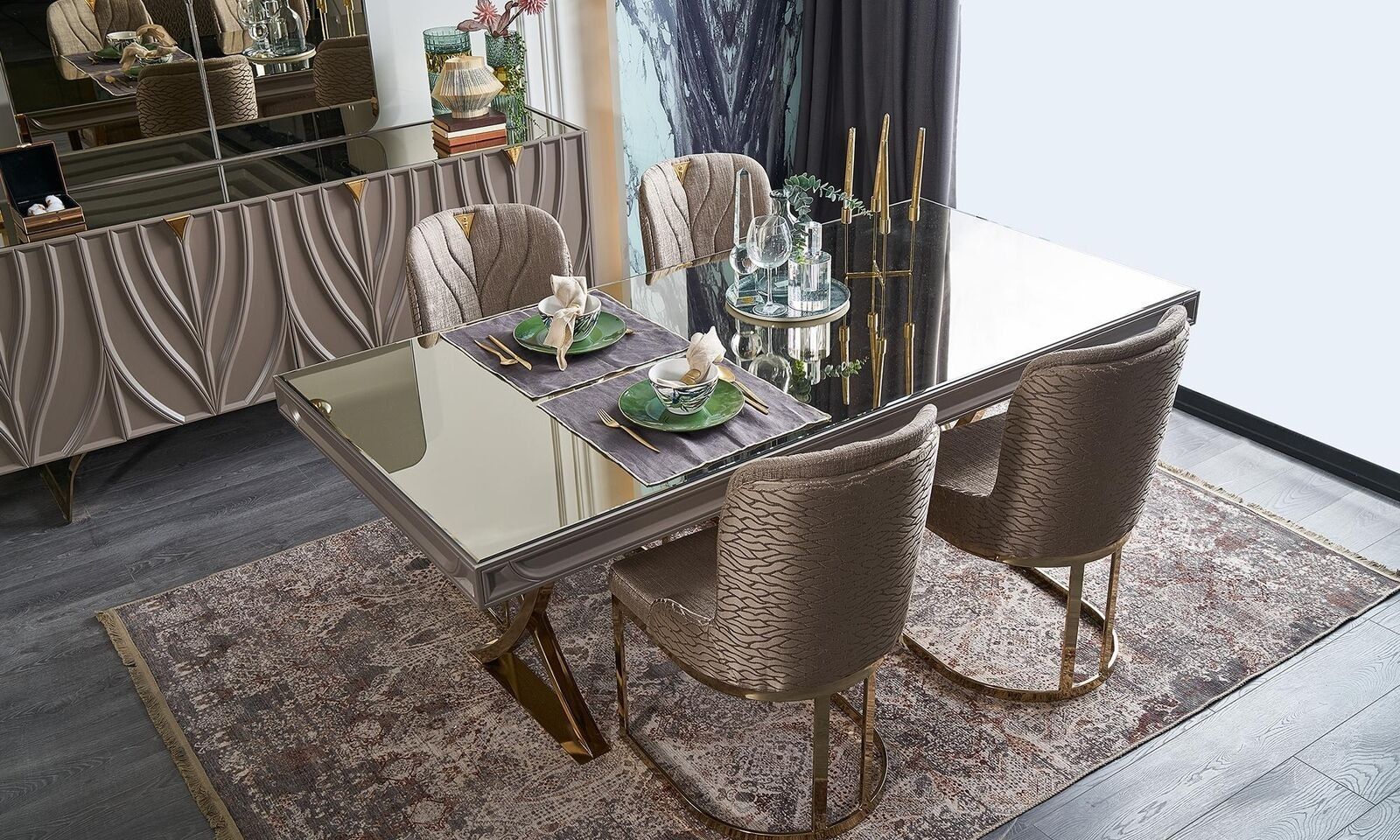 Esstisch Essgruppe Essecke Esszimmer Holz Braun Set 7tlg Stühle Luxus