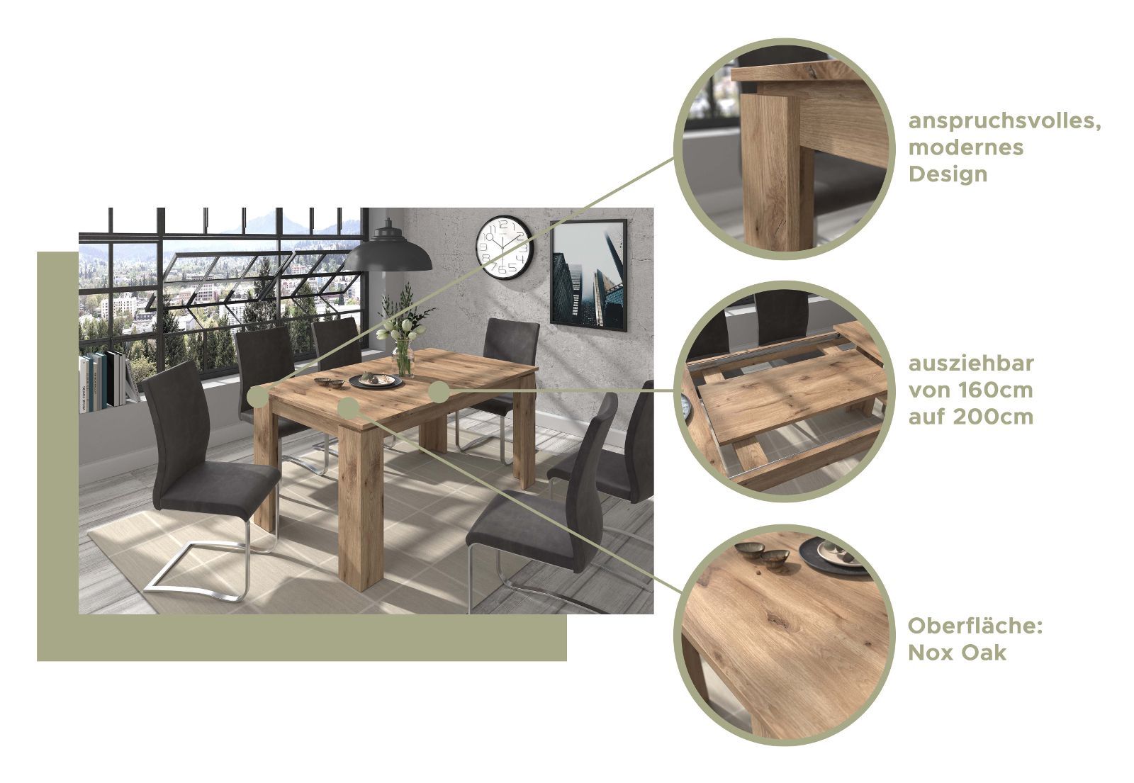 Esstisch Esszimmer Tisch Eiche Ausziehtisch 160 200 cm bis 8 Pers. Küchentisch Selen