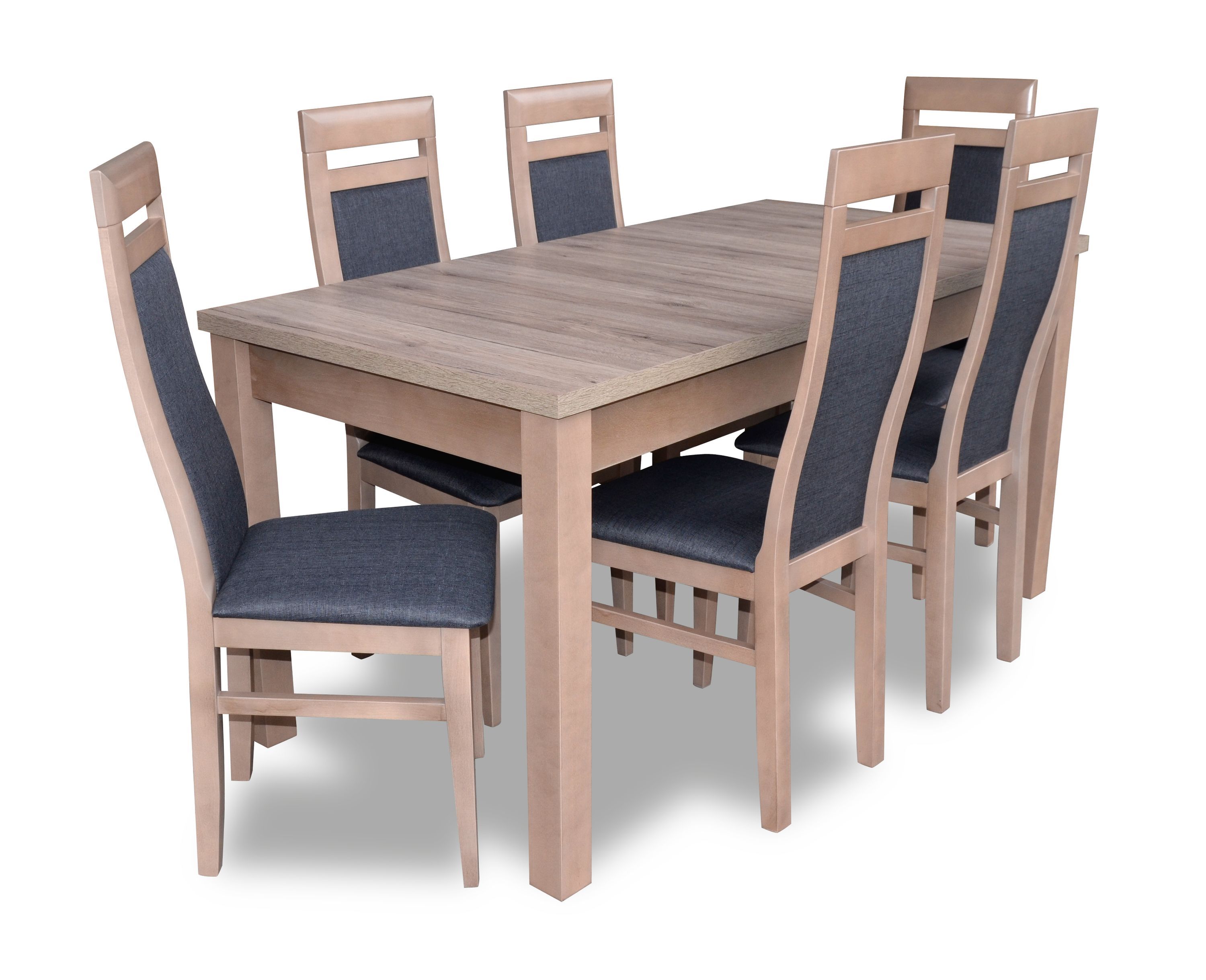 Esstisch Garnitur Tisch + 6x Stühle Stuhl Esszimmer Garnitur Tisch Holz Textil