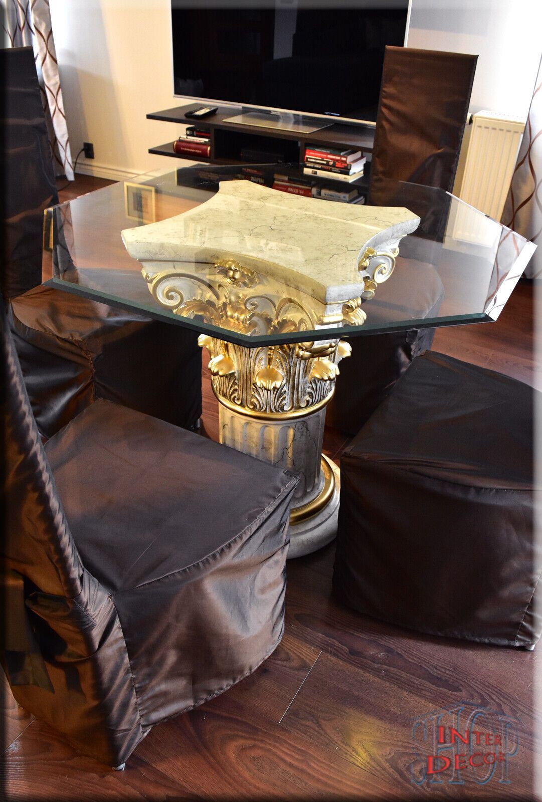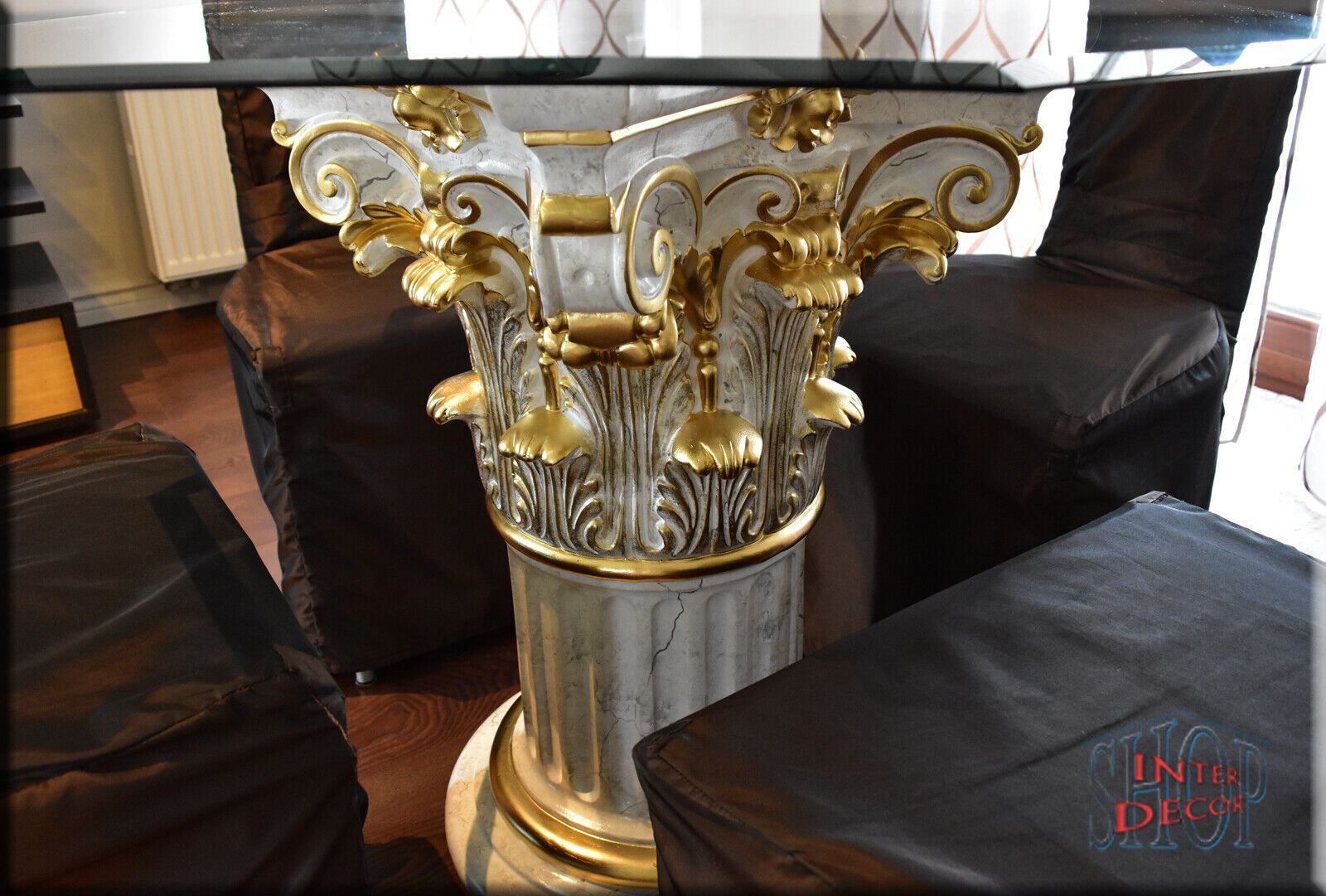 Esstisch Glas Glastisch Tisch Wohnzimmertisch Marmor Optik Design Säule 97cm