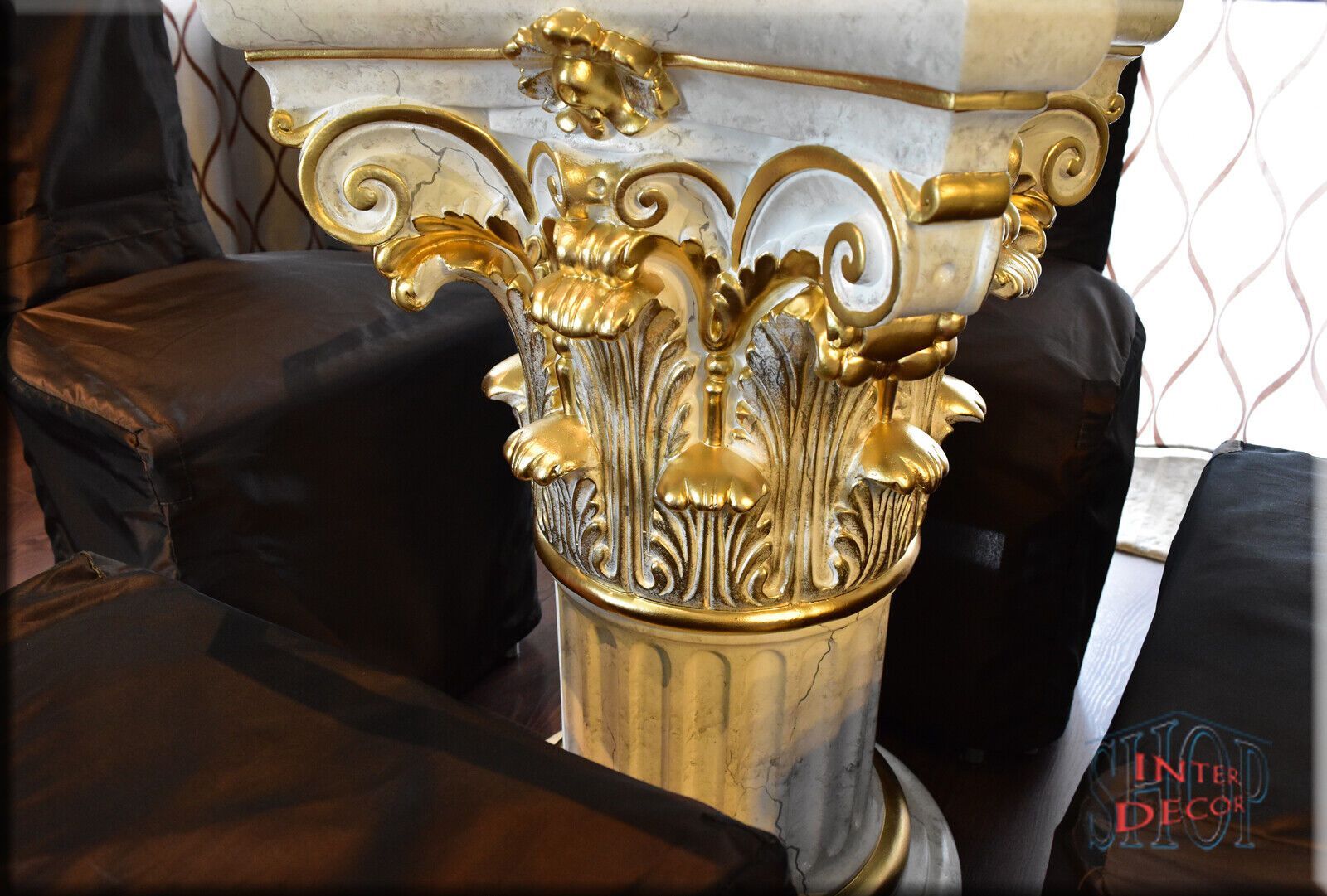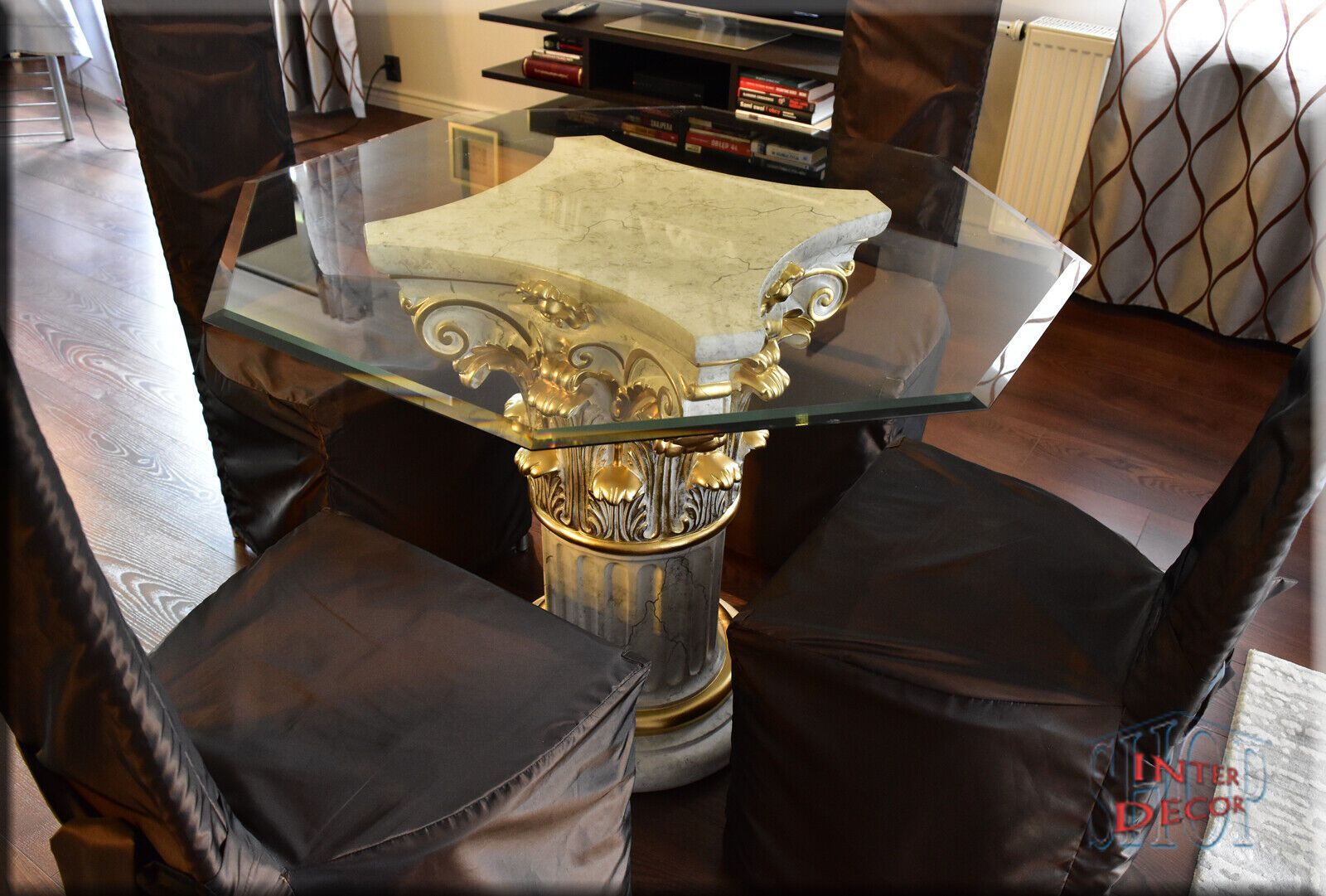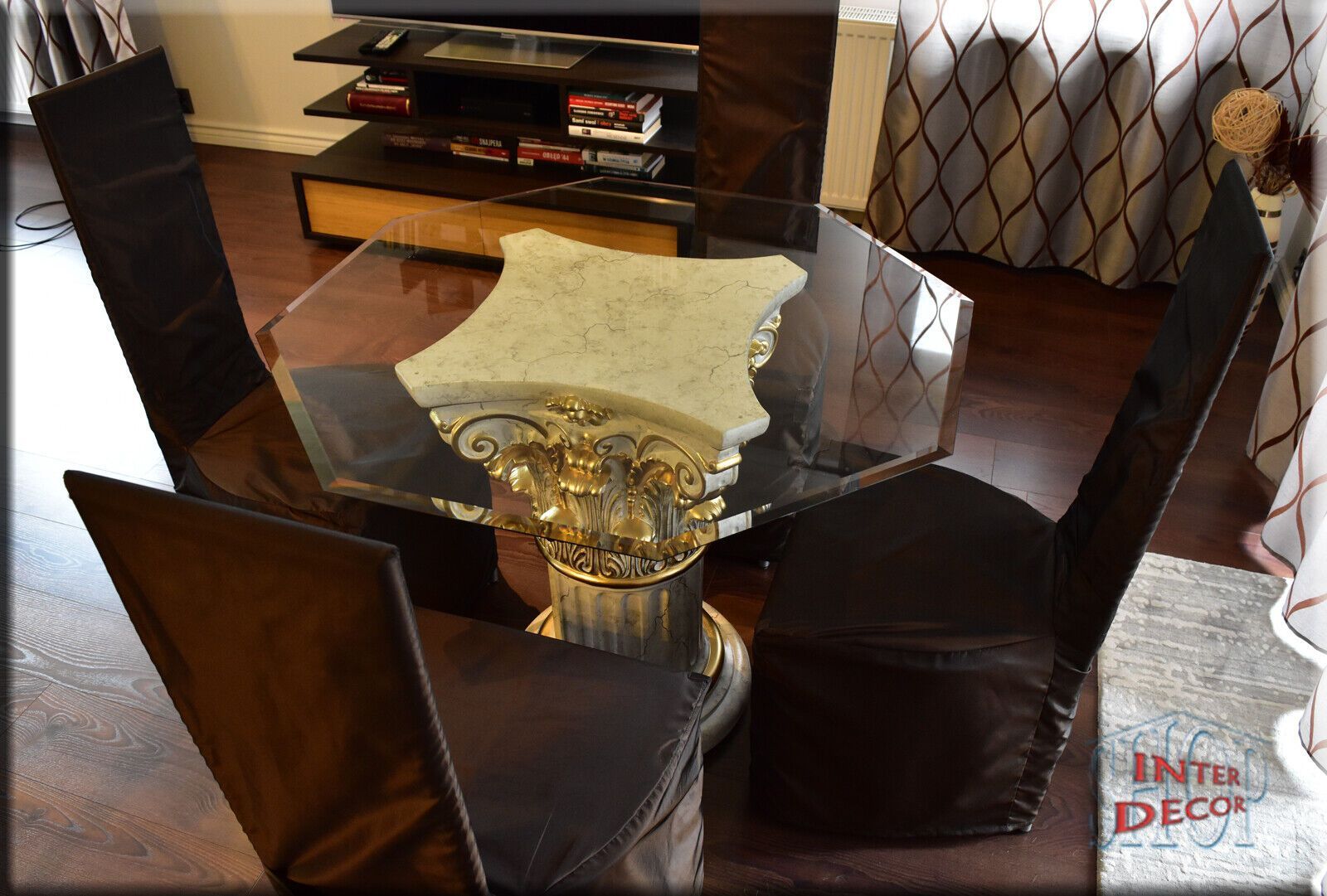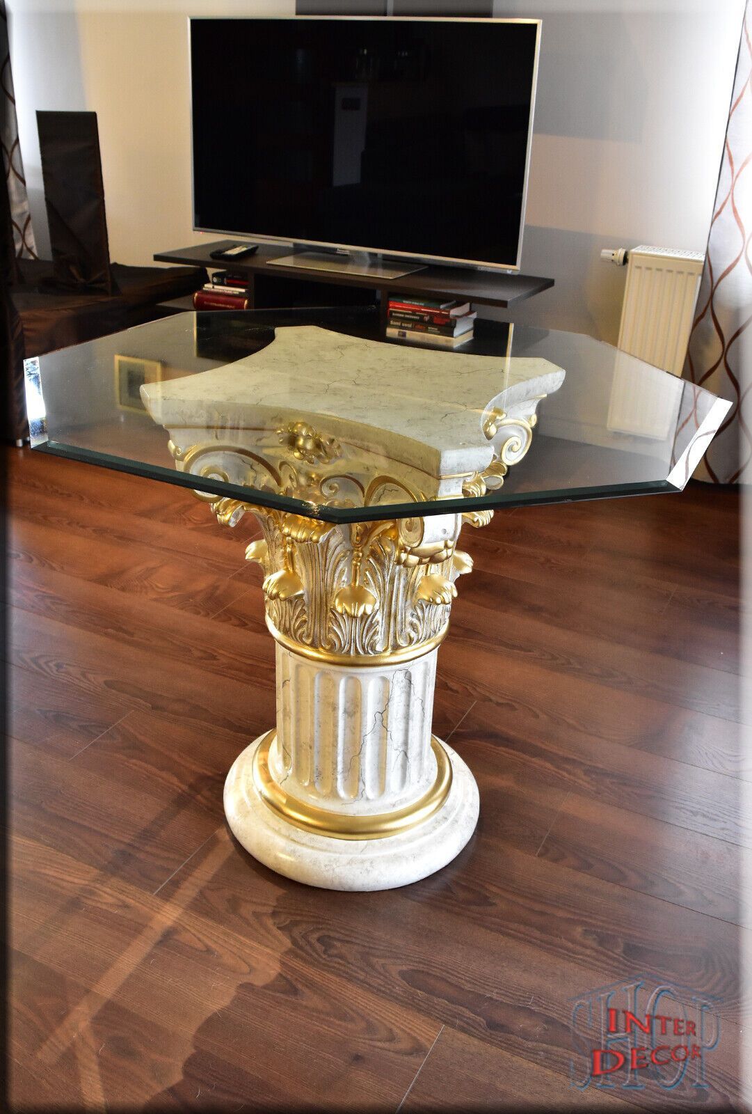 Esstisch Glas Glastisch Wohnzimmertisch Tisch Design Marmor Optik Säule 97cm