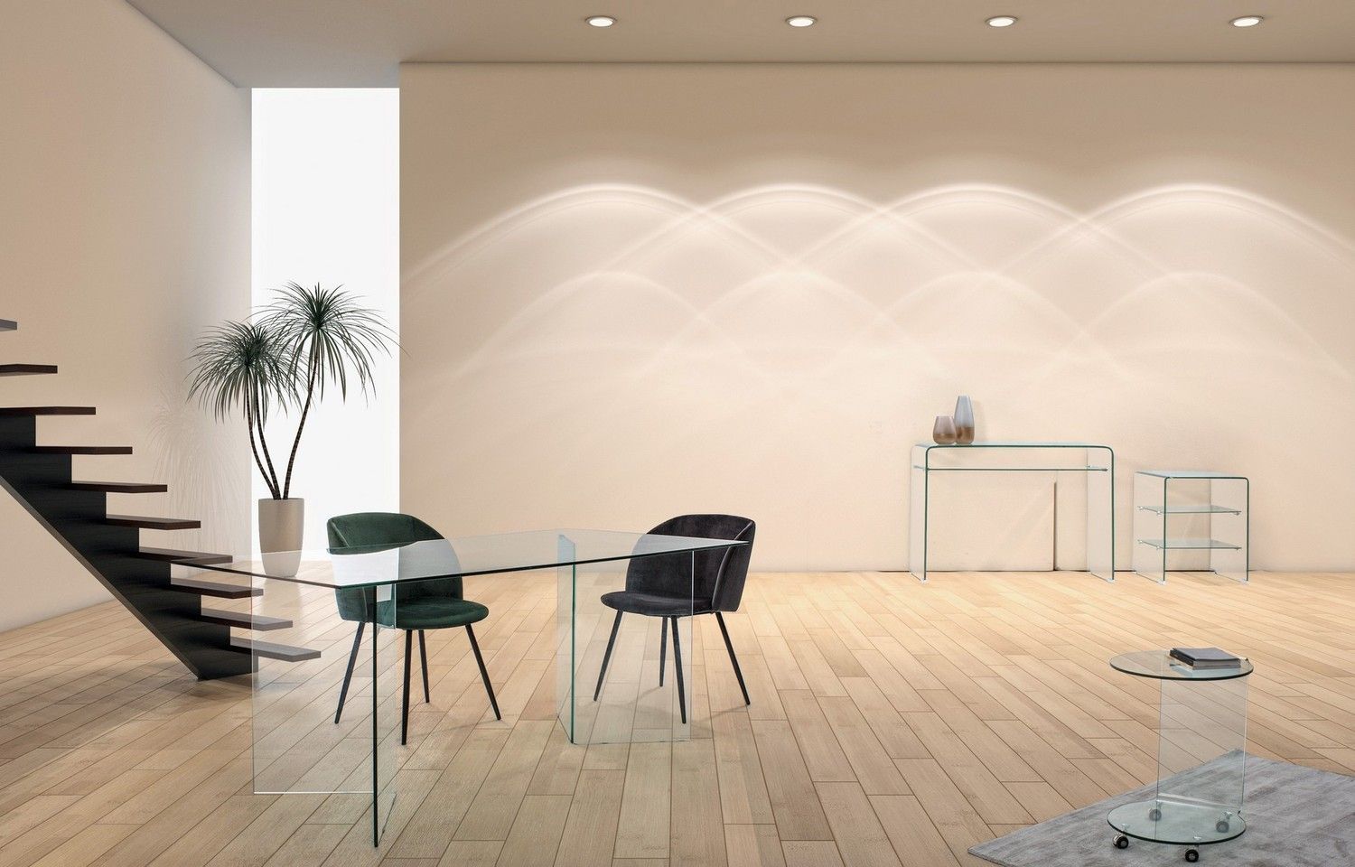Esstisch Iride 180x90x75cm Beine und Tischplatte aus gehärtetem Glas Transparent