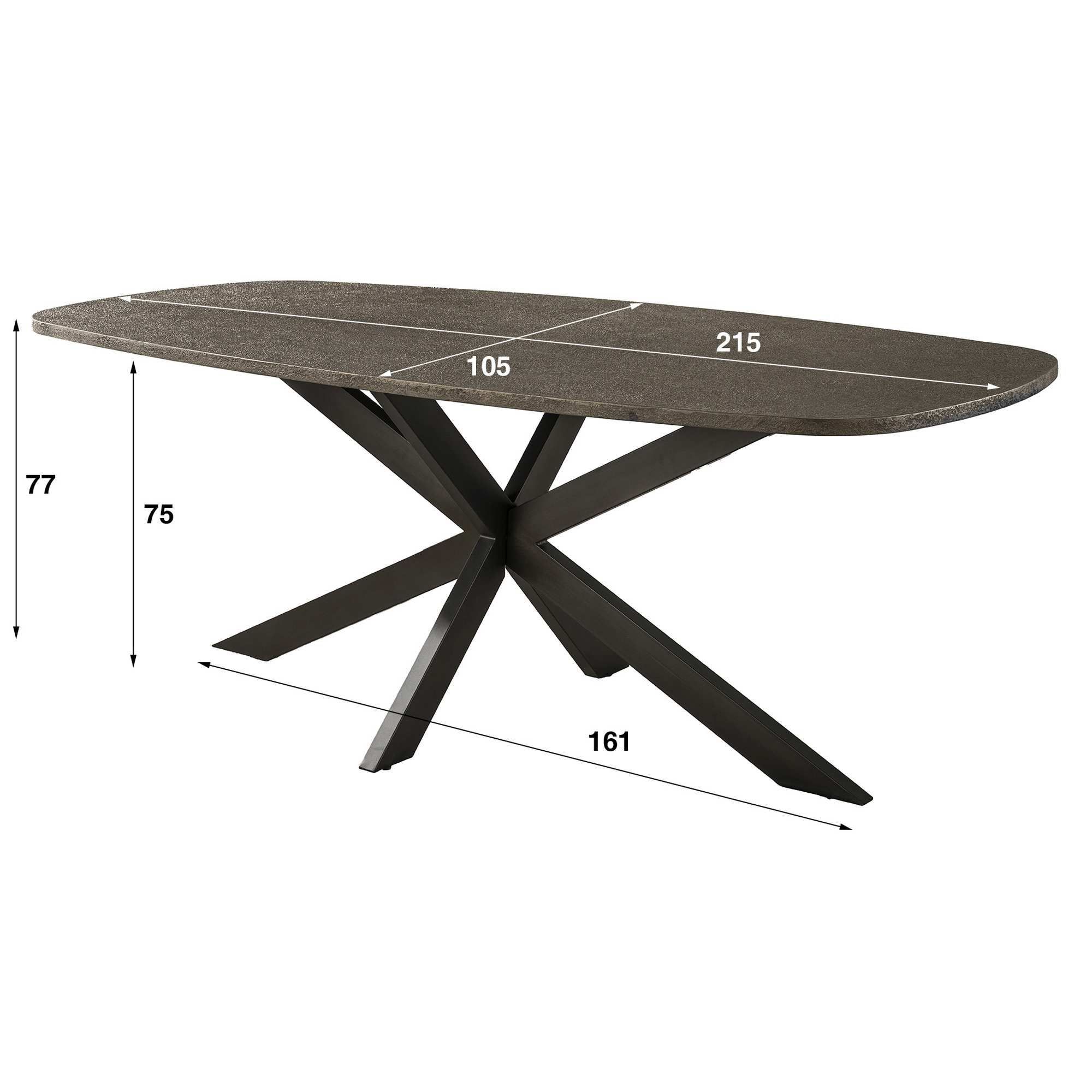 Esstisch Kivon Bronze-Metallic - oval mit Spider-Gestell, 215 cm (Gr. 215x105x77 cm)