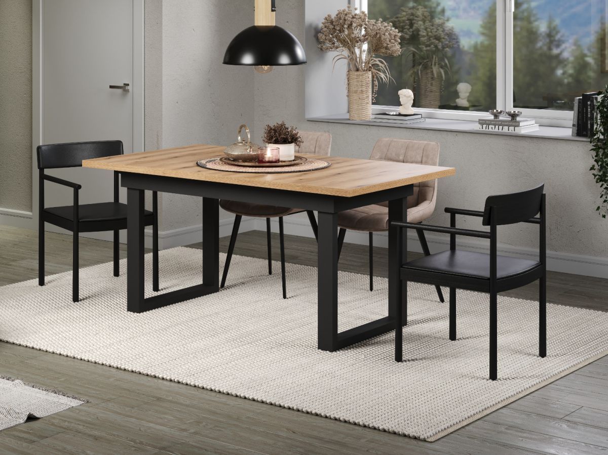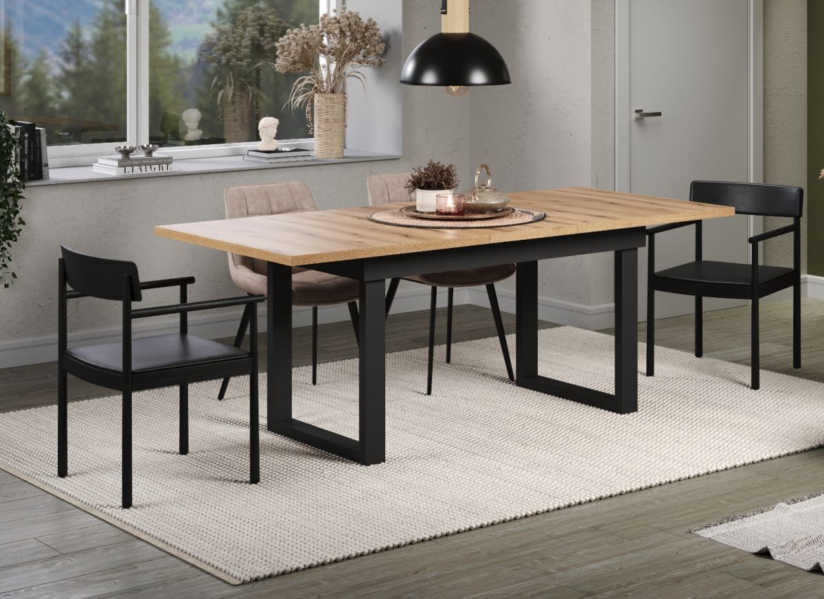 Esstisch Küchentisch ausziehbar 160 - 200 cm Eiche helI Metallgestell Syncro