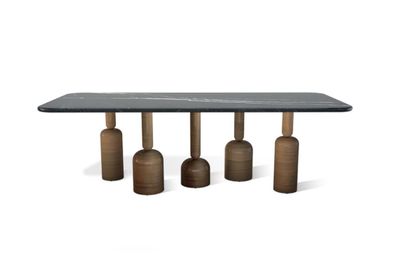 Moderner Esstisch mit elegantem Marmor und stilvollem Holzgestell