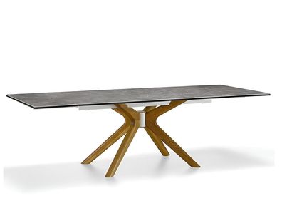 Holz Esstisch in Natur mit Edelstahl- und Marmor-Imitat, modern