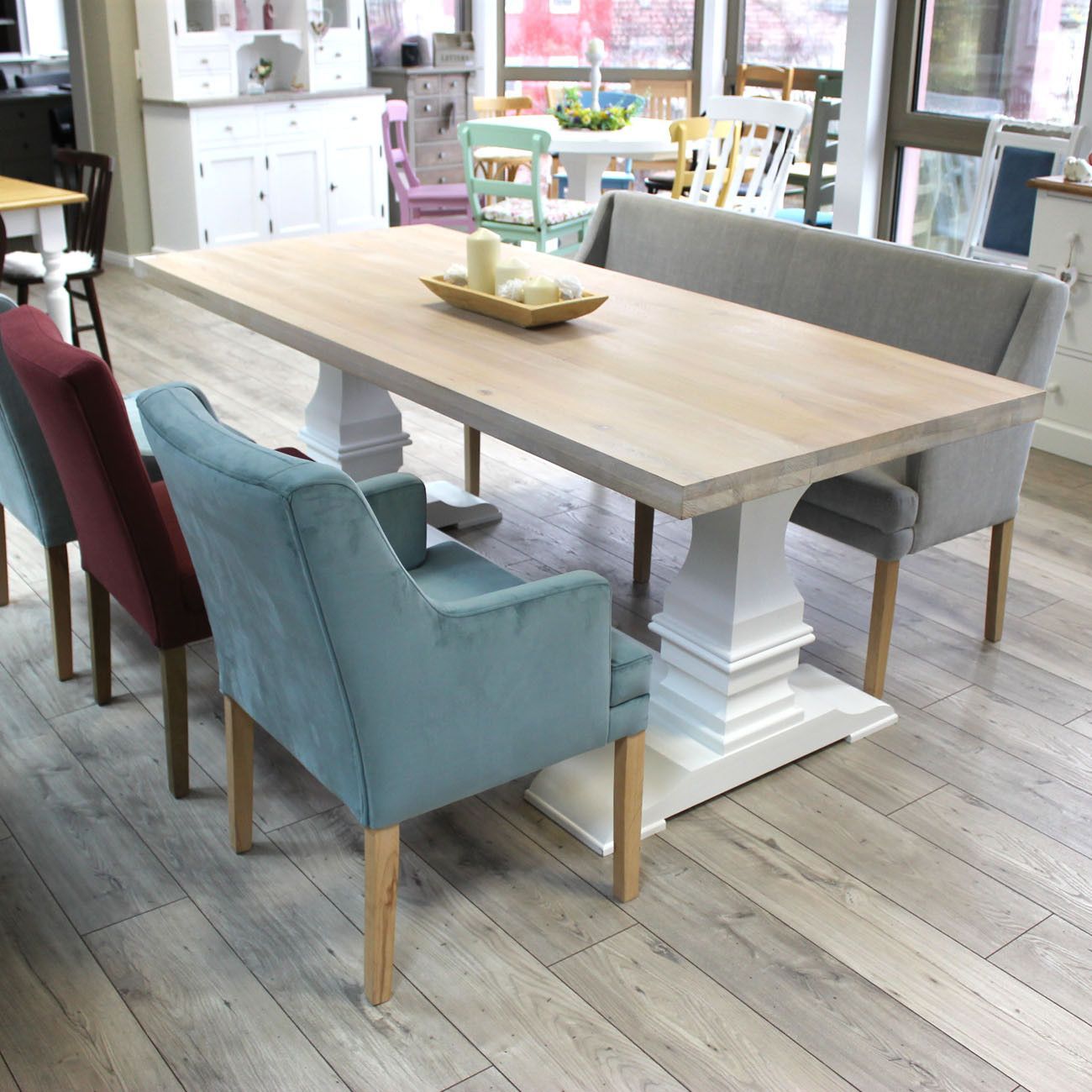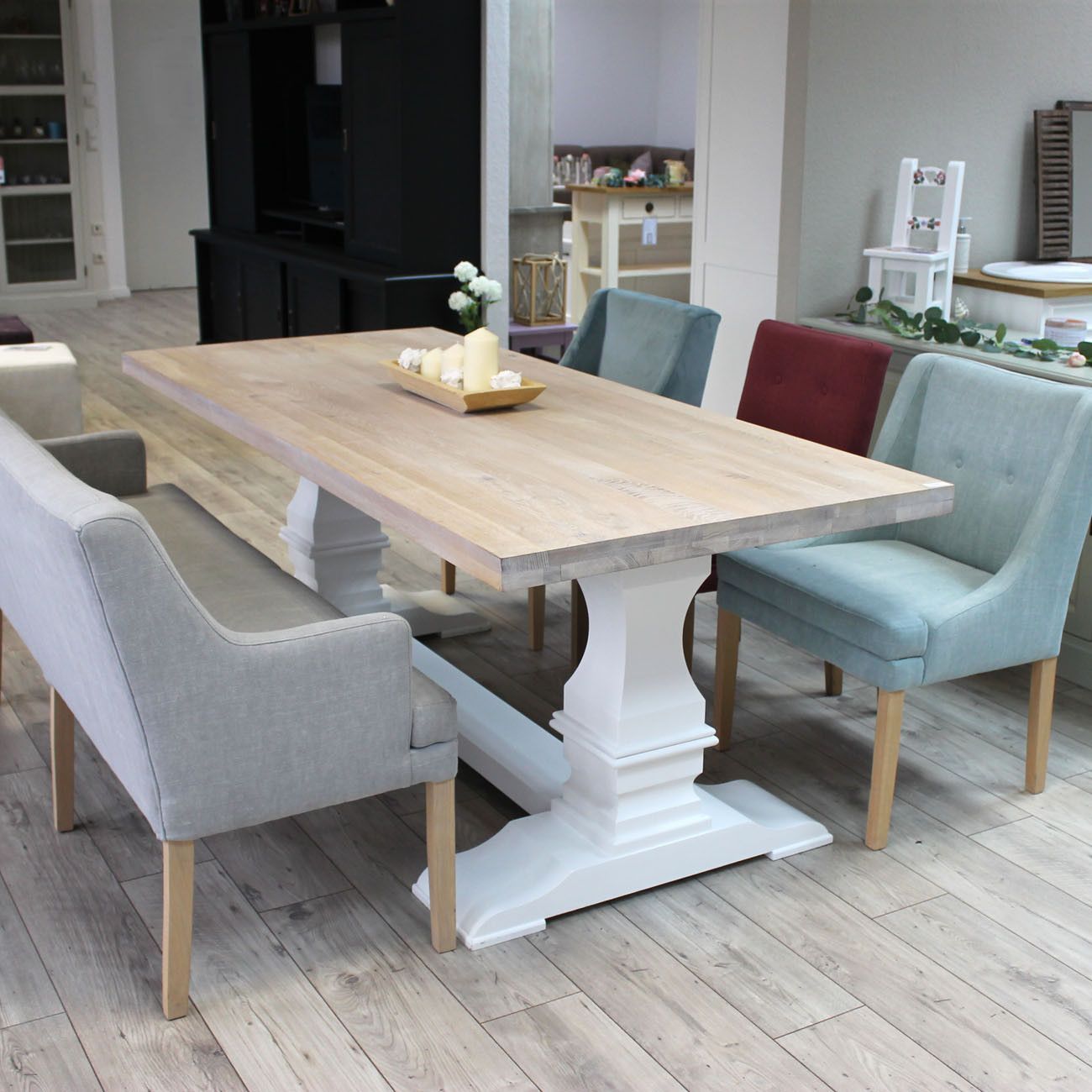 Esstisch Massivholz 210 cm Küchentisch weiß Vintage Speisetisch Landhausstil