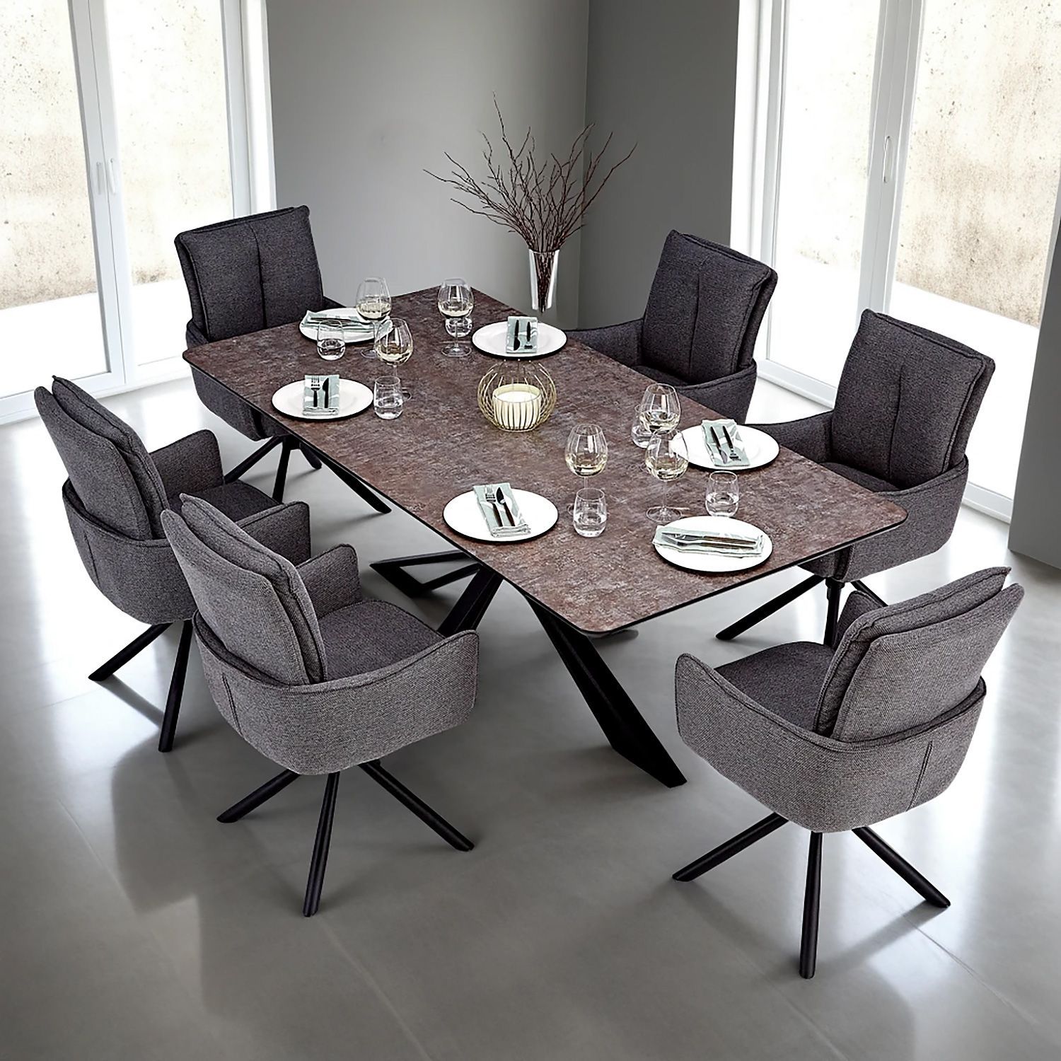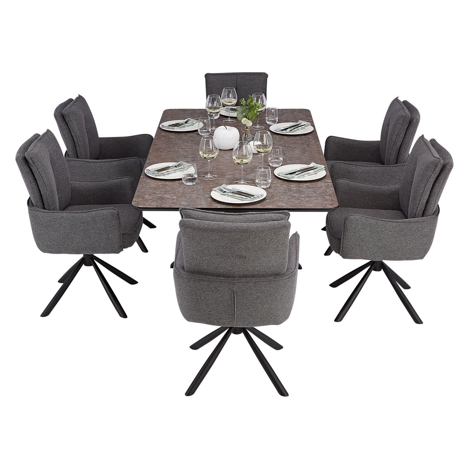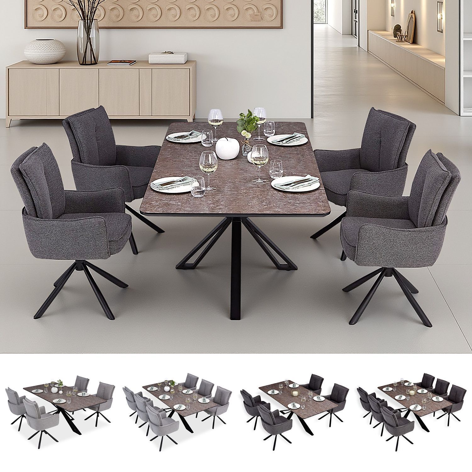 Esstisch mit 4 oder 6 Stühlen Set Essgruppe Polsterstühle Drehbar Grau Anthrazit