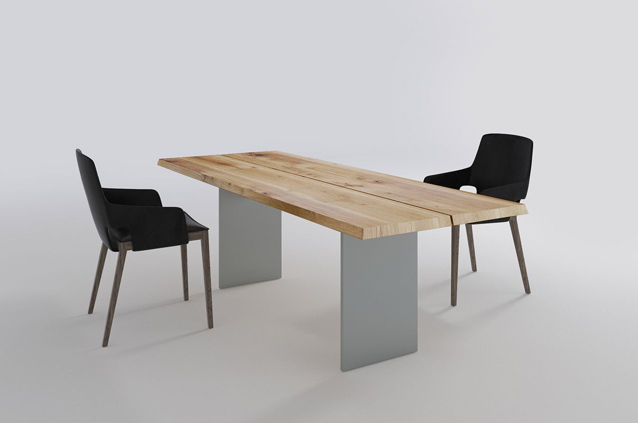 Esstisch Natt 270 x 100 cm 2-geteilte Tischplatte Eiche Massiv Metall Silber