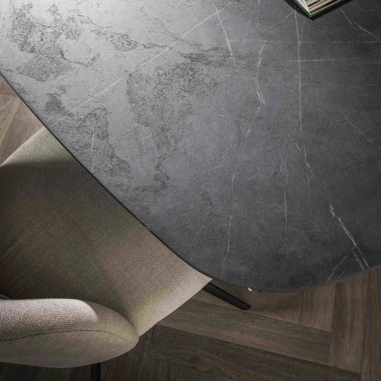 Esstisch oval Melaminbeschichtung in Keramikoptik, modern skandinavisch,