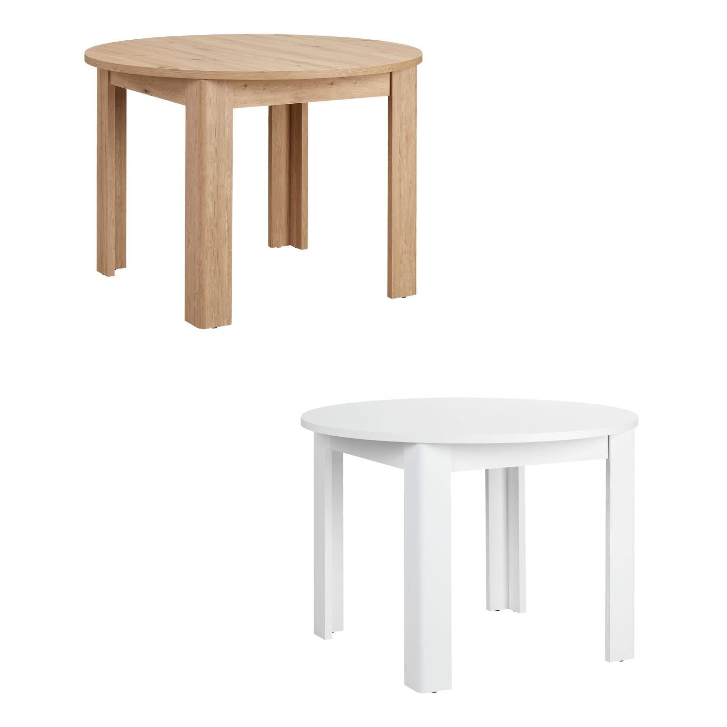 Esstisch Rund Ø 106 cm Wohnzimmertisch Holz Eiche Weiß Esszimmertisch Tisch Holzti