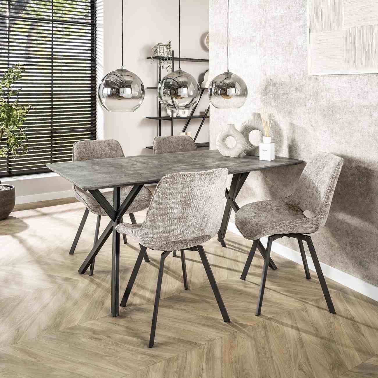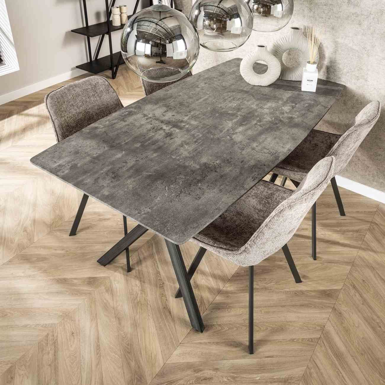 Esstisch Tener MDF Betonoptik, Industrial Design mit X-Fuß, grau, 160 x 90 cm,