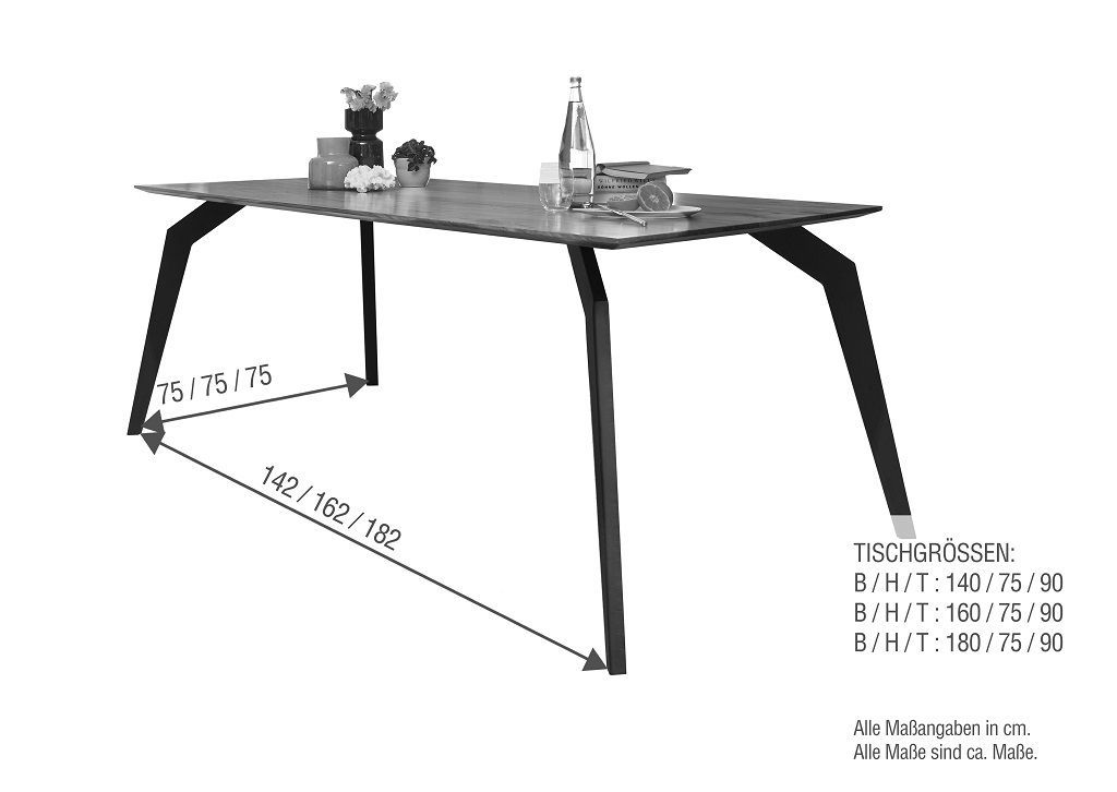 Esstisch "Terai" 160x90cm Akazie & Eisen schwarz