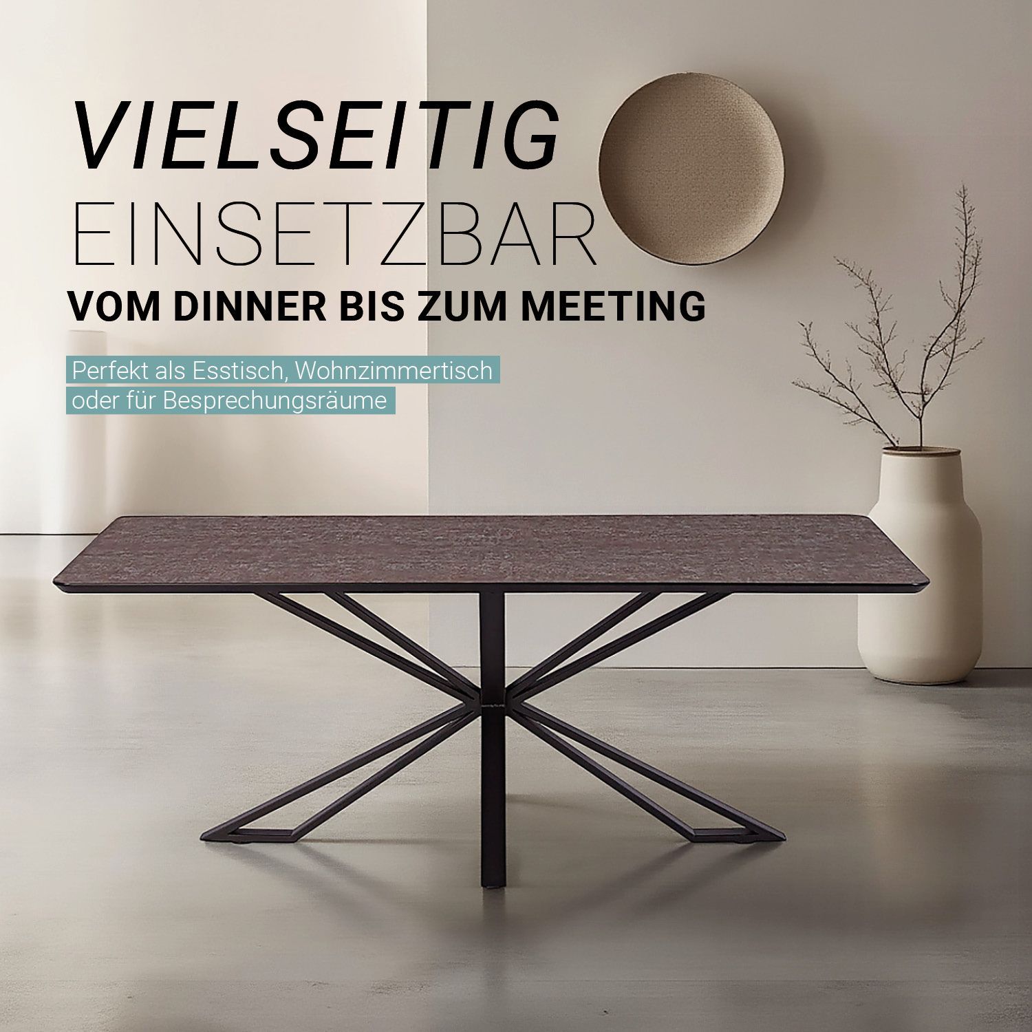 Esstisch Wohnzimmertisch 200x100 cm Tisch Esszimmertisch Metall Schwarz Braun